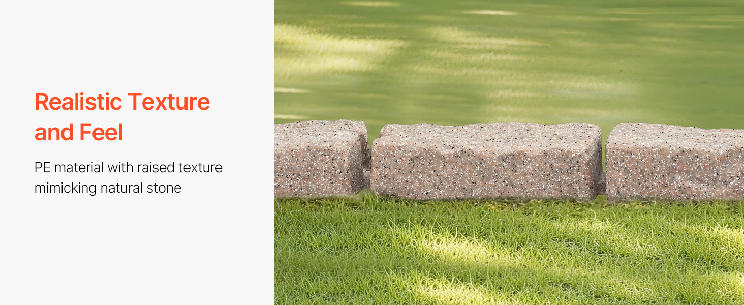 Эта каменная ландшафтная окантовка имеет реалистичную текстуру камня, которая без особых усилий повышает визуальную привлекательность вашего сада, бассейна, дорожек. Модульная конструкция обеспечивает быстрый монтаж. Изготовленная из качественного полиэтилена, эта окантовка газона устойчива к выцветанию, коррозии, легка и долговечна.