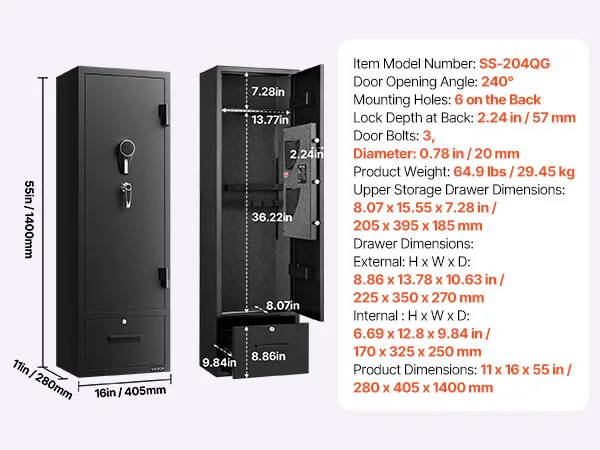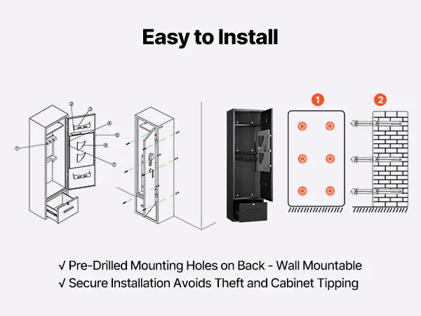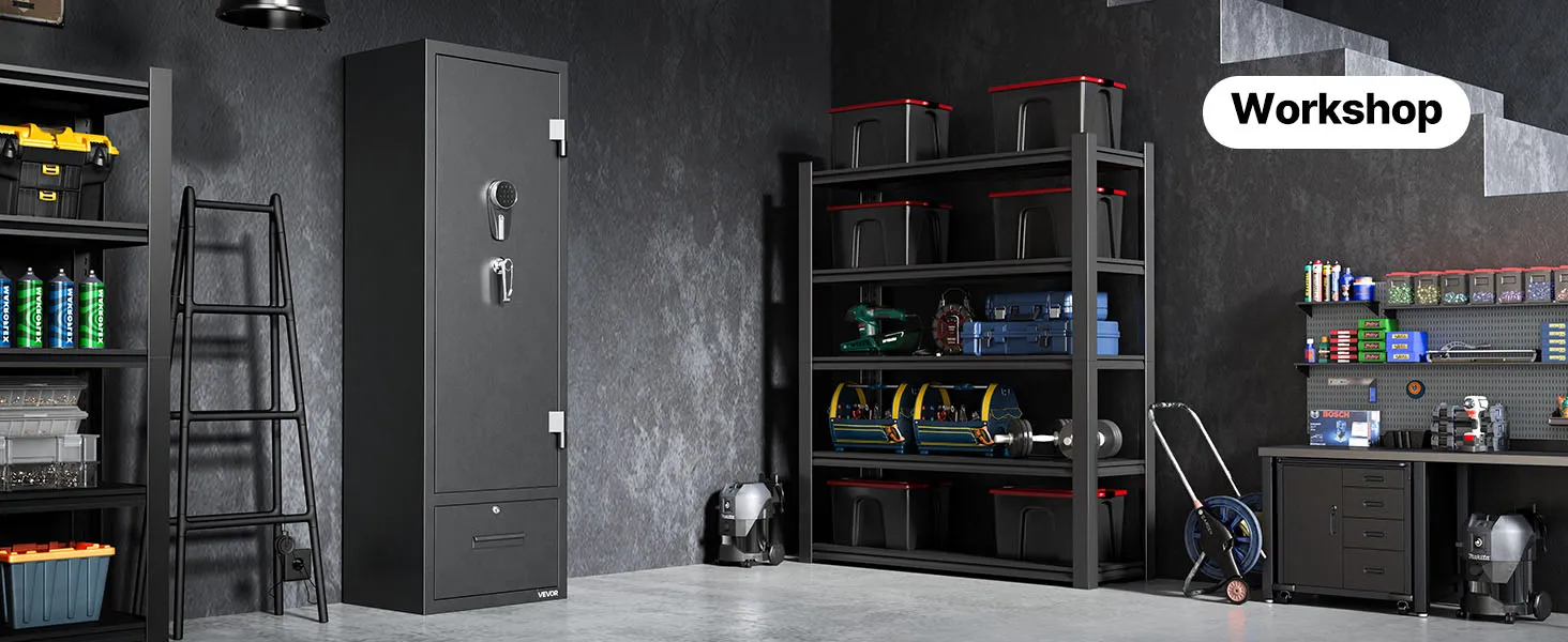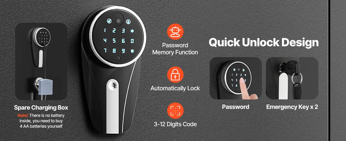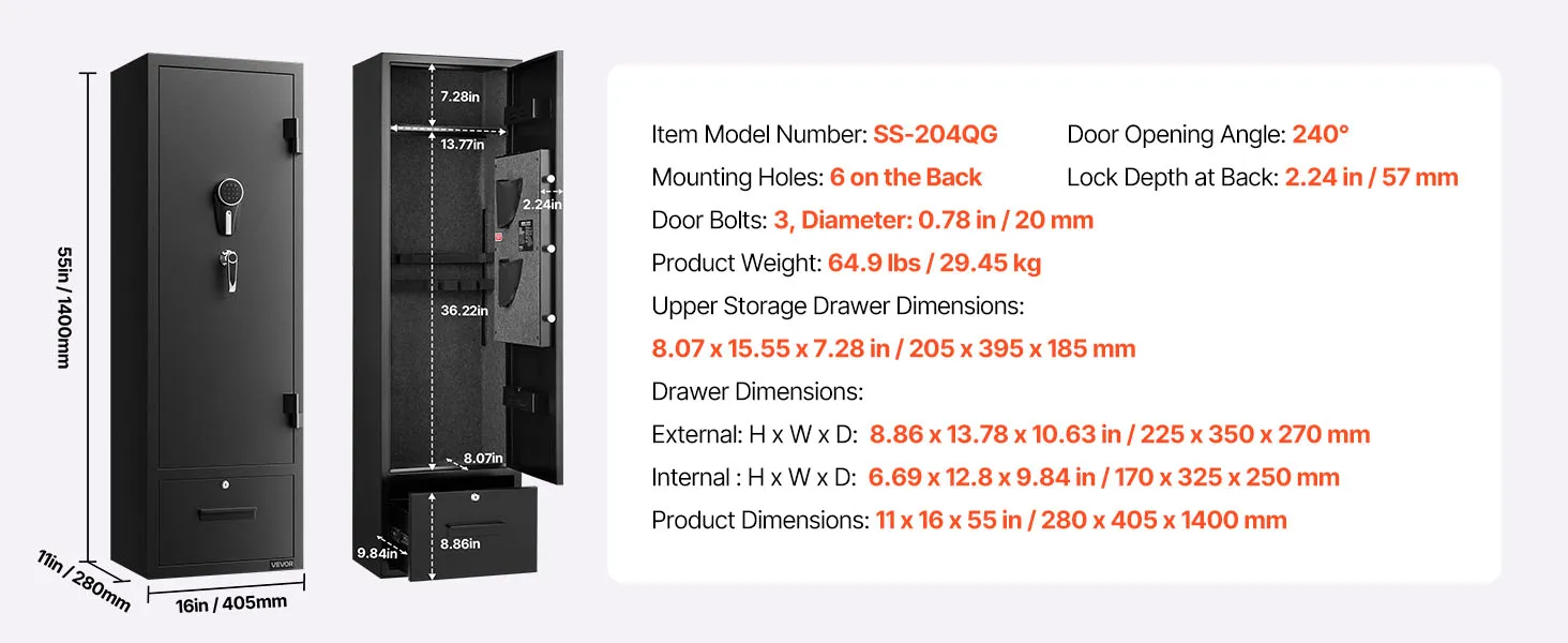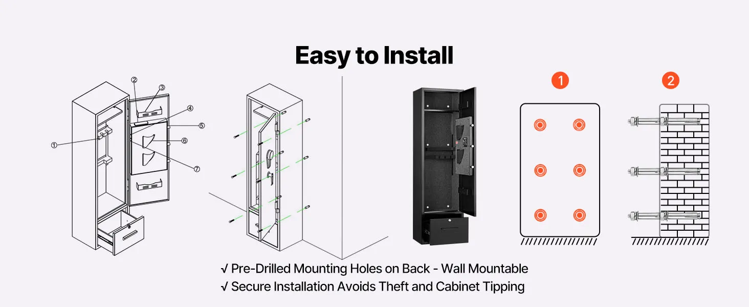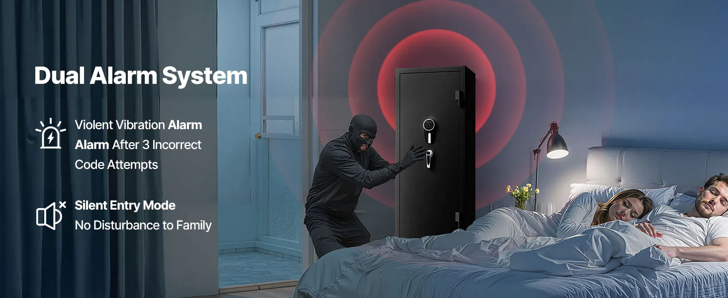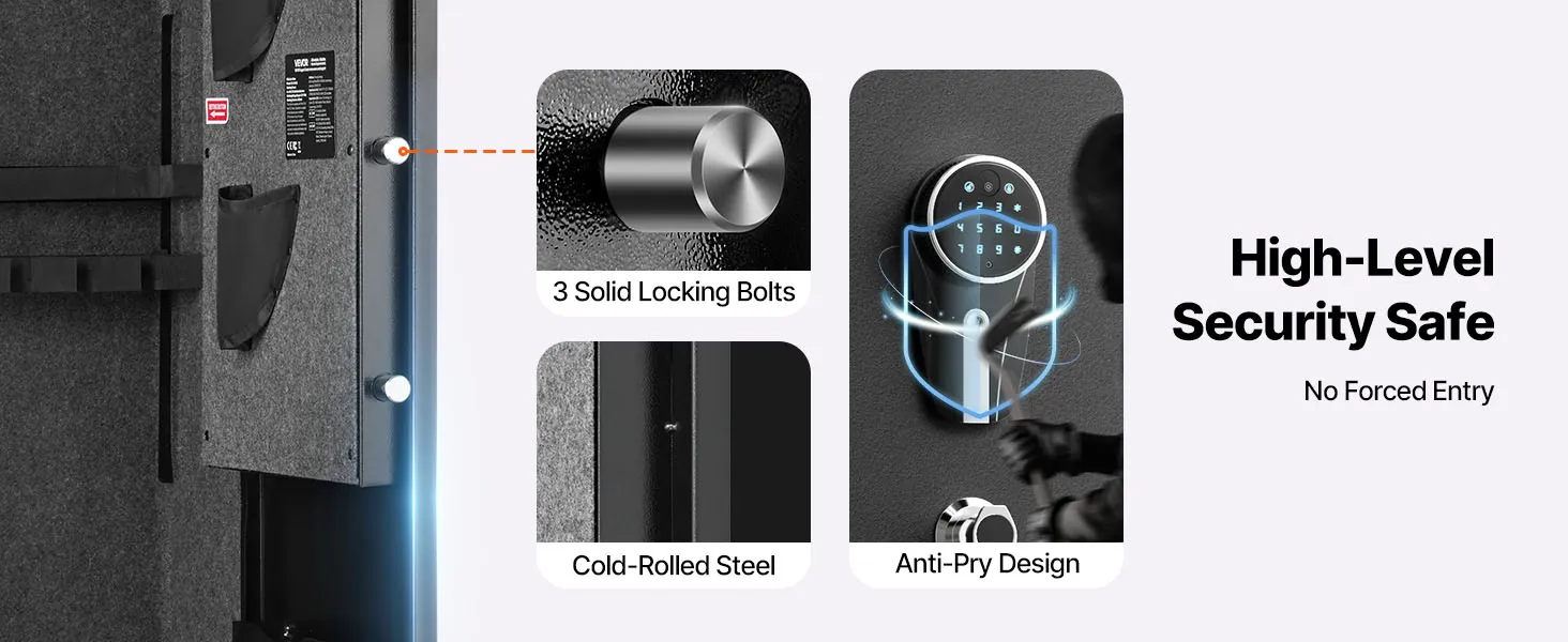The gun safe can hold up to 4 rifles and features a hidden compartment for storing ammunition and other items, meeting the storage needs of heavy collectors and multi-gun users. It also comes with adjustable racks to accommodate firearms of different lengths.