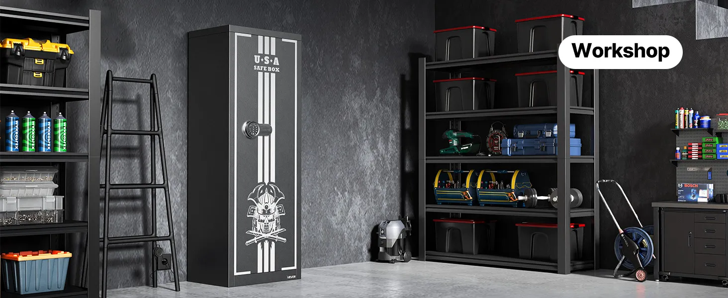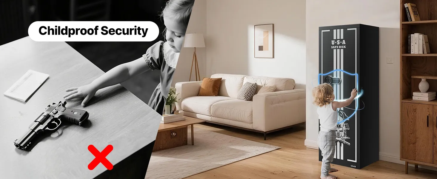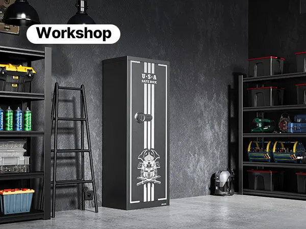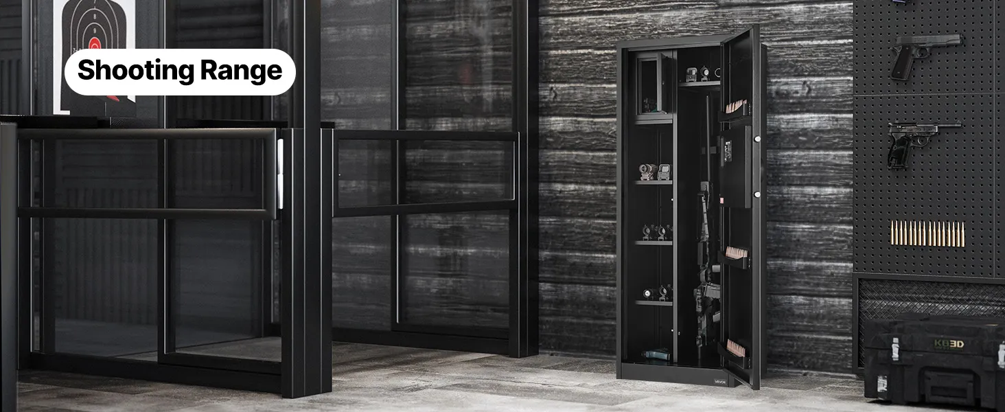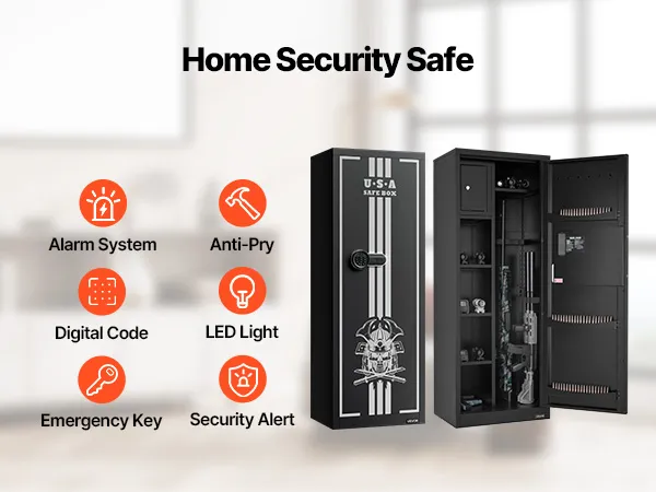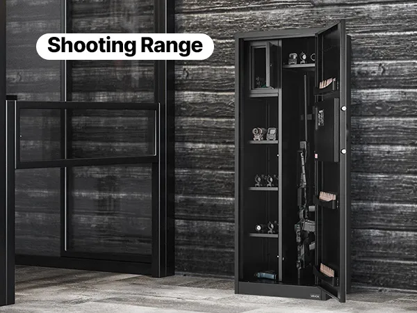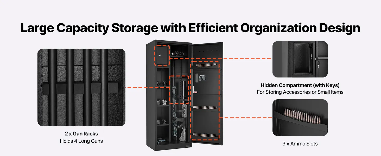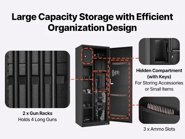 The gun safe can hold up to 4 rifles and features a hidden compartment for storing ammunition and other items, meeting the storage needs of heavy collectors and multi-gun users. It also comes with adjustable racks to accommodate firearms of different lengths.