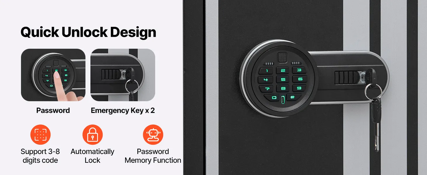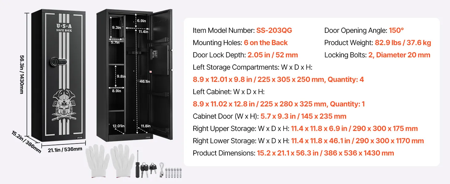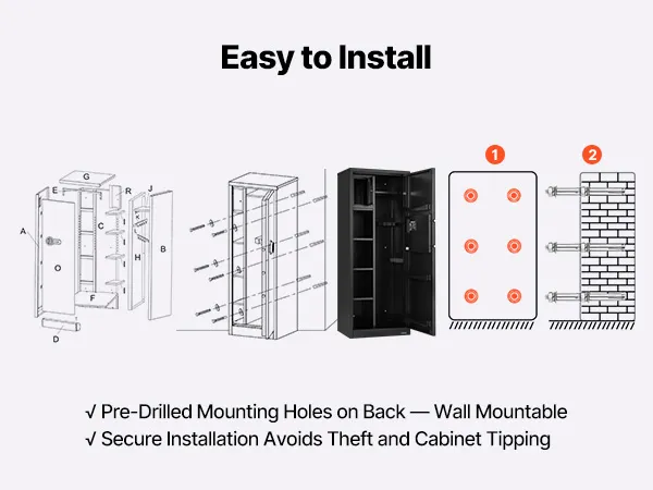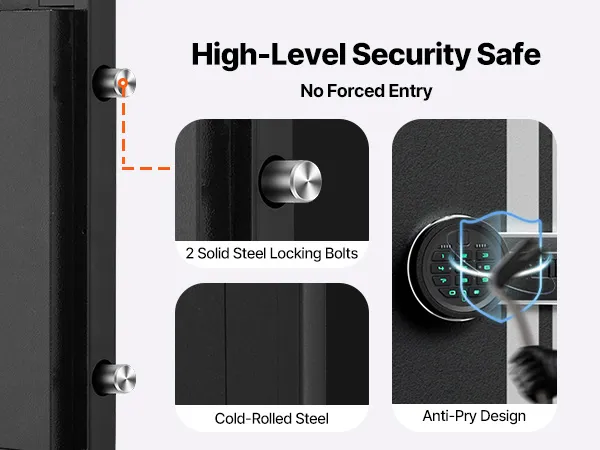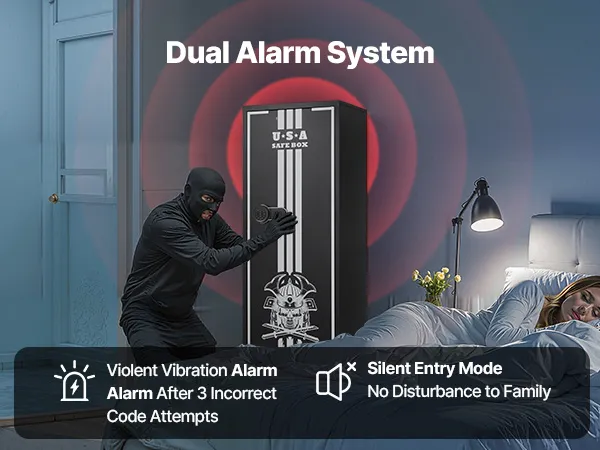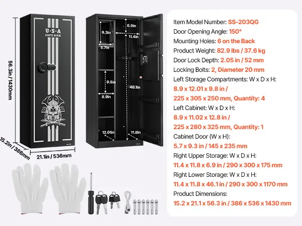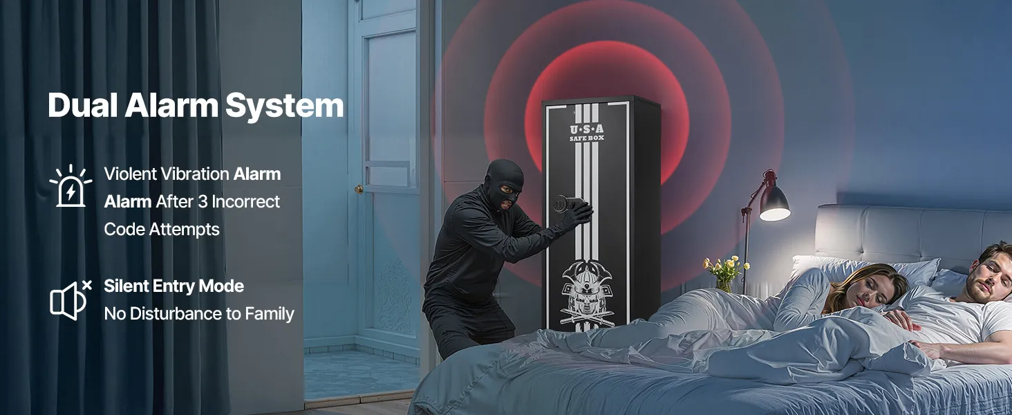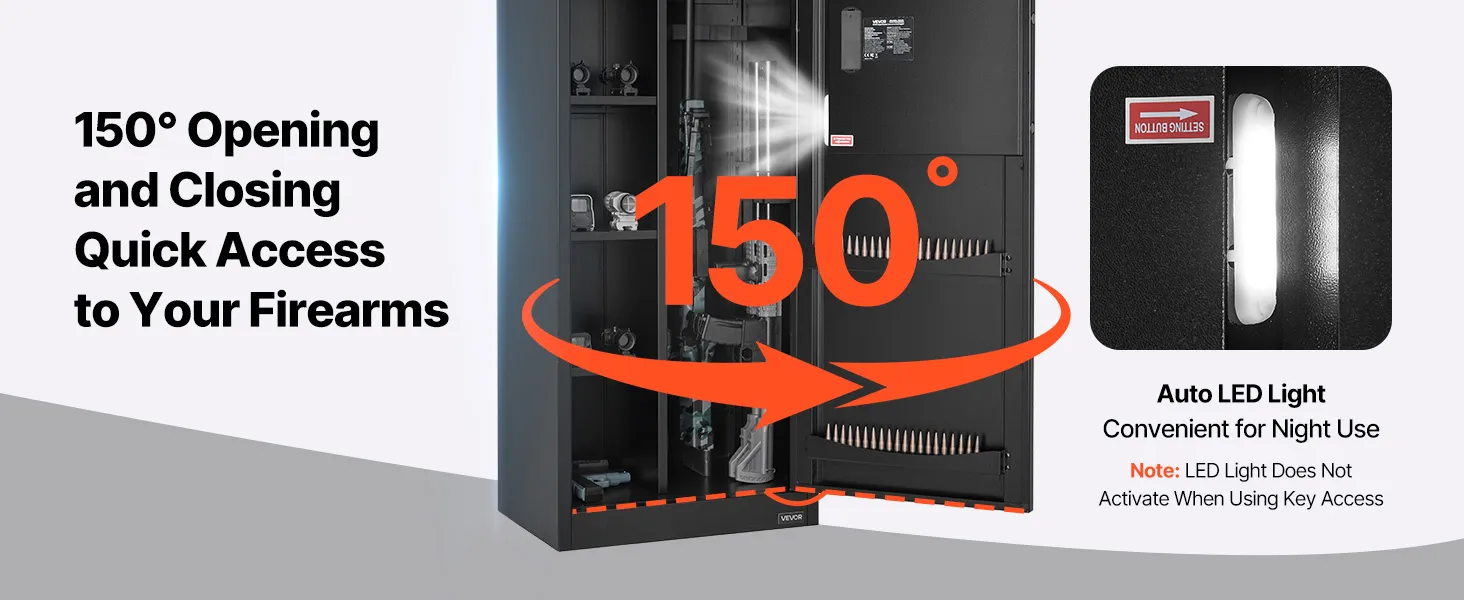 The gun safe can hold up to 4 rifles and features a hidden compartment for storing ammunition and other items, meeting the storage needs of heavy collectors and multi-gun users. It also comes with adjustable racks to accommodate firearms of different lengths.