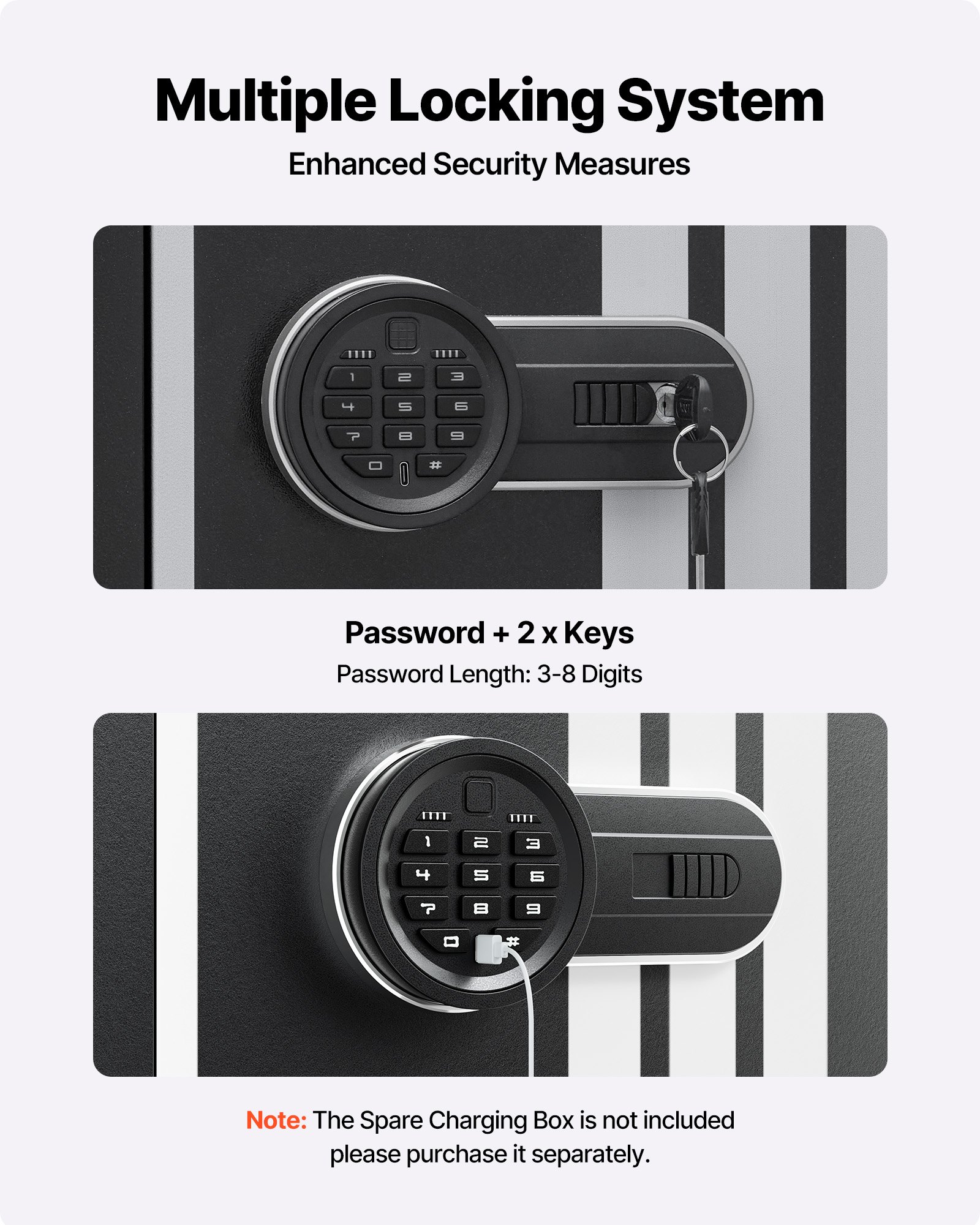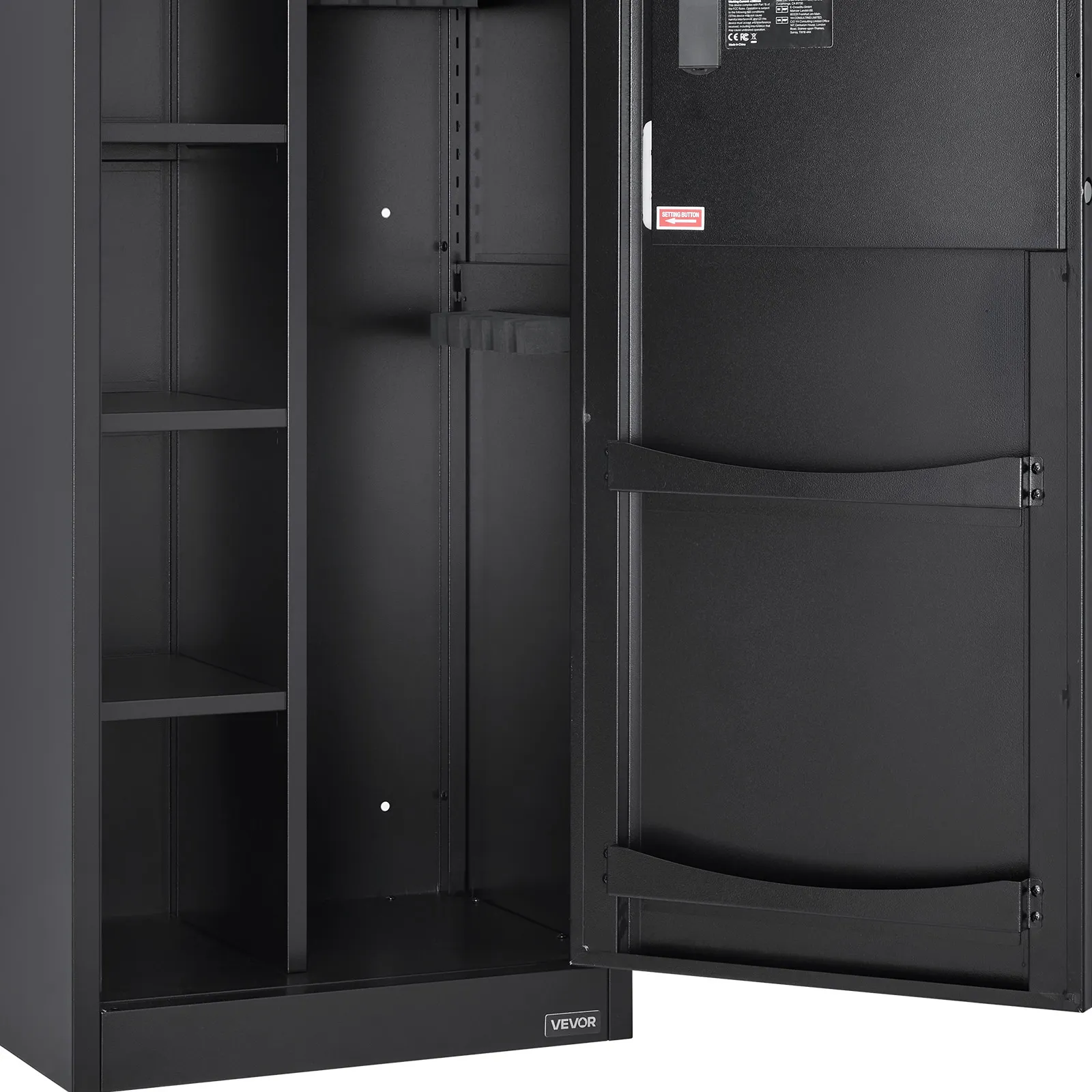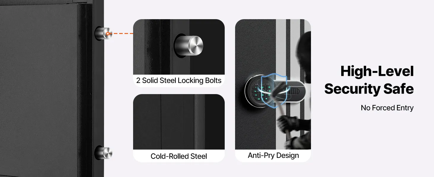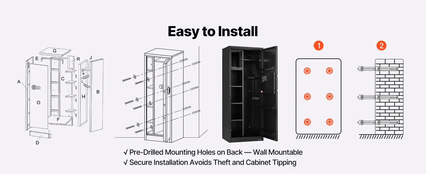The gun safe can hold up to 4 rifles and features a hidden compartment for storing ammunition and other items, meeting the storage needs of heavy collectors and multi-gun users. It also comes with adjustable racks to accommodate firearms of different lengths.