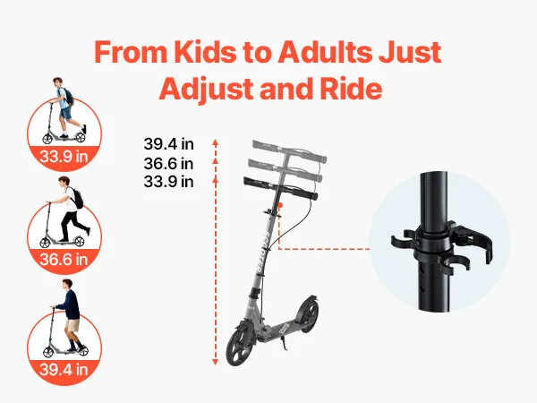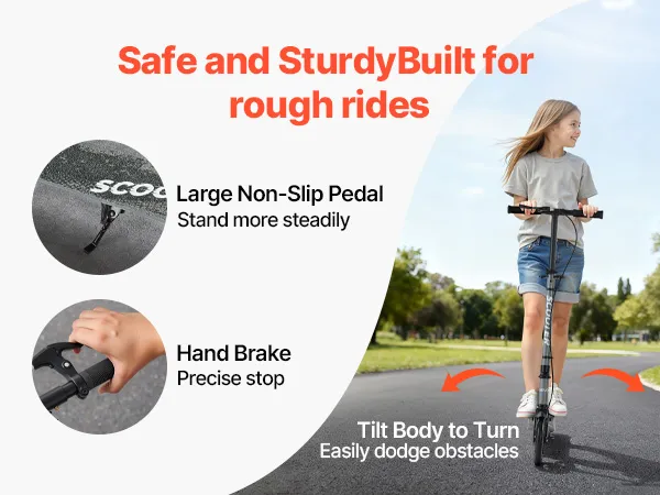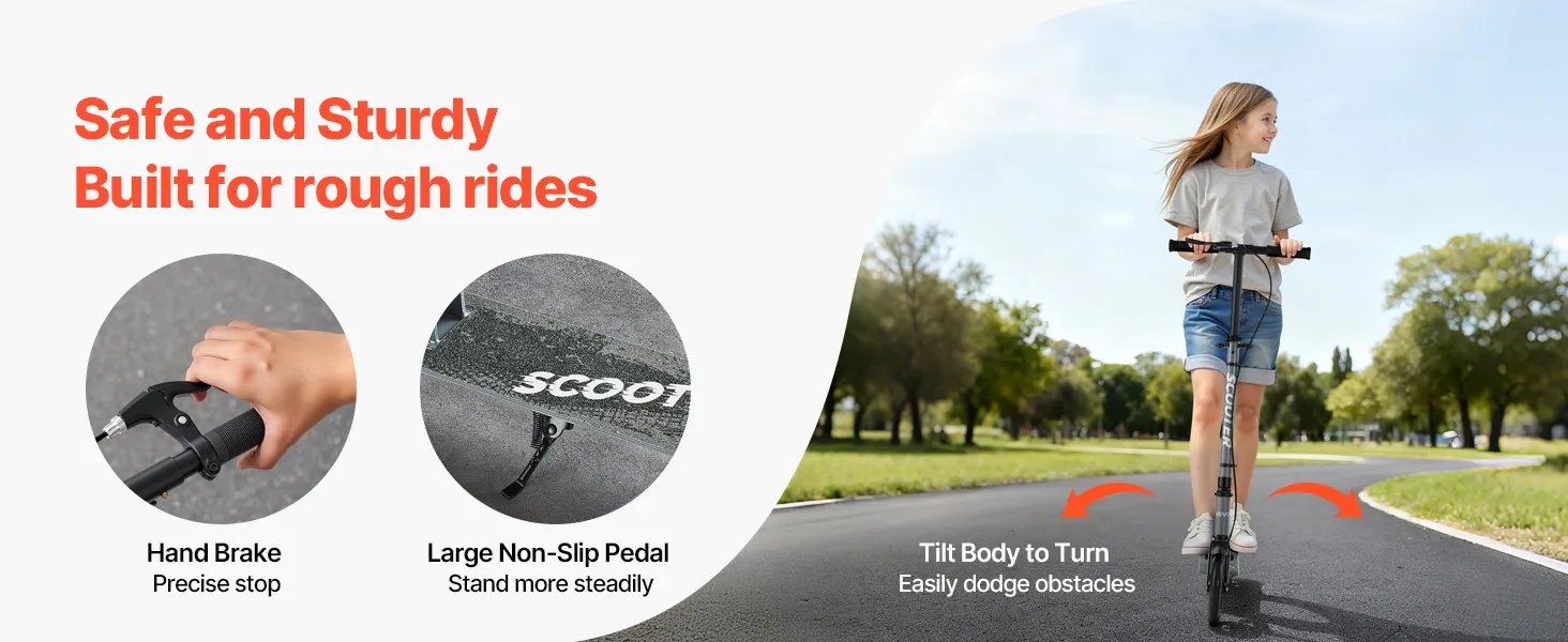Our kids kick scooter features non-slip handle covers for a secure grip, ensuring it won't easily slip out of little hands.