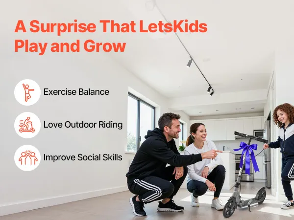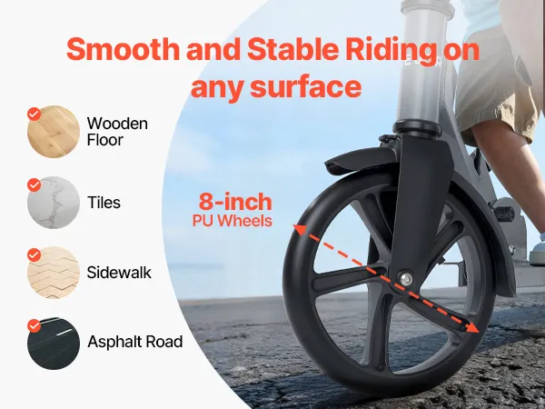 This kids kick scooter suits different age groups, letting children enjoy active fun while providing parents a convenient travel option. With its high weight capacity and large wheels, it rides smoothly on both indoor floors and outdoor surfaces.