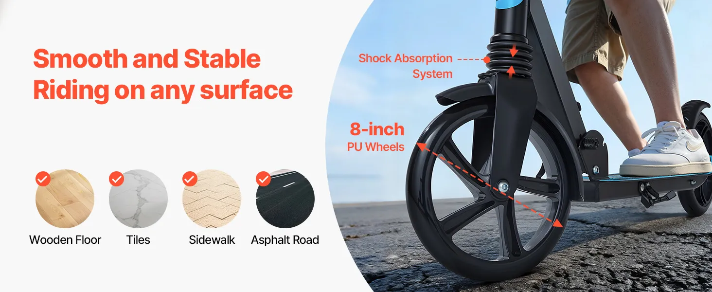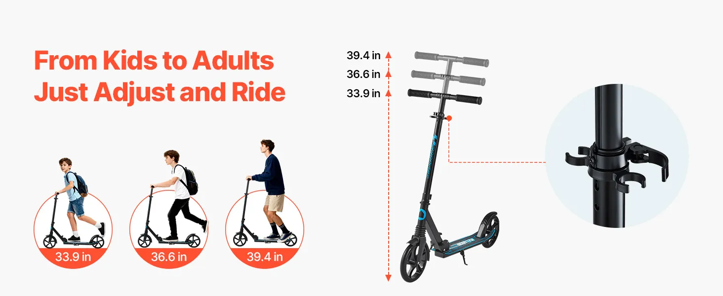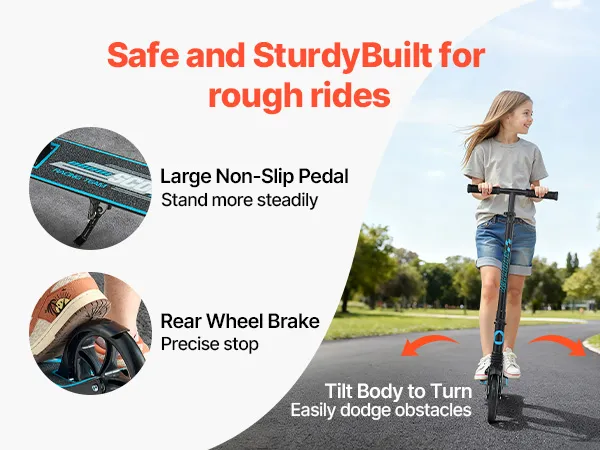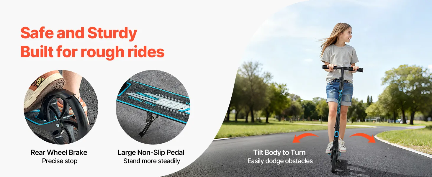 Our kids kick scooter features non-slip handle covers for a secure grip, ensuring it won't easily slip out of little hands.