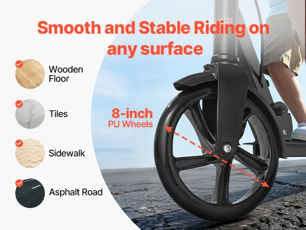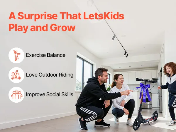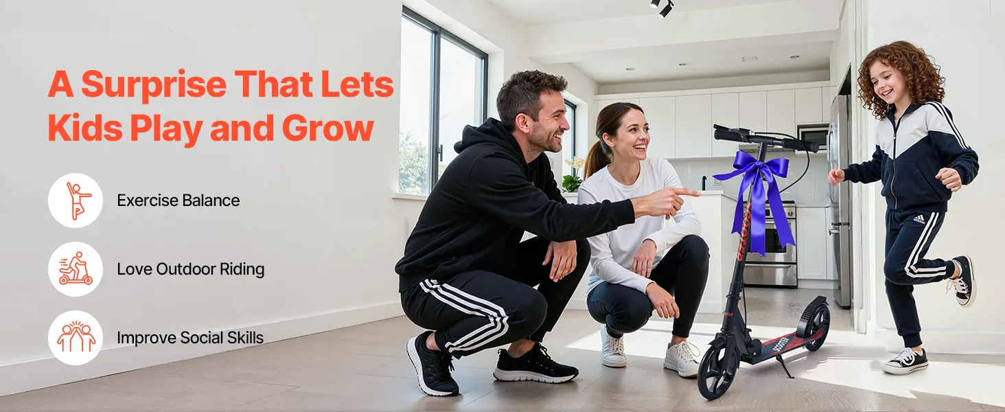 This kids kick scooter suits different age groups, letting children enjoy active fun while providing parents a convenient travel option. With its high weight capacity and large wheels, it rides smoothly on both indoor floors and outdoor surfaces.