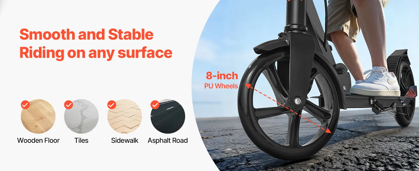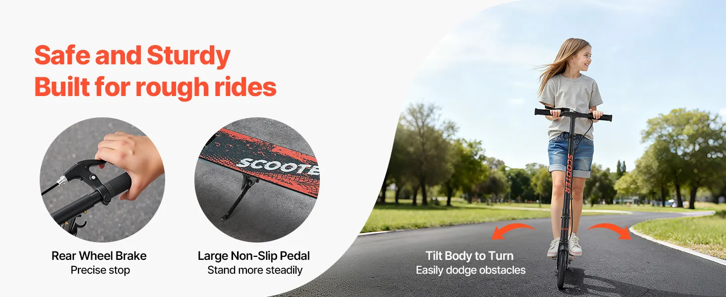 Our kids kick scooter features non-slip handle covers for a secure grip, ensuring it won't easily slip out of little hands.