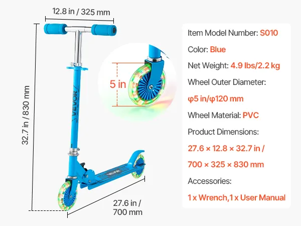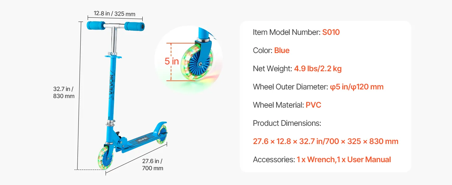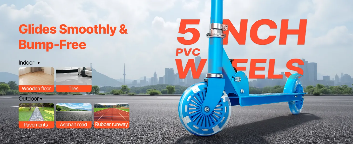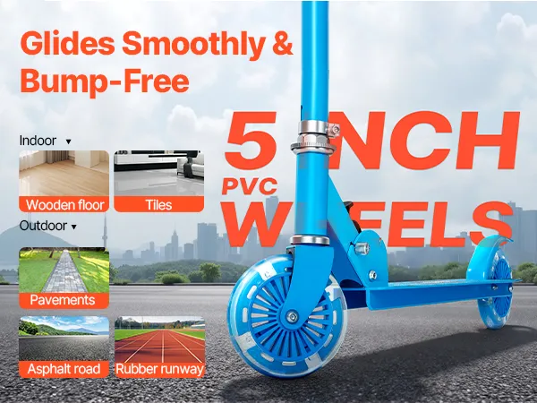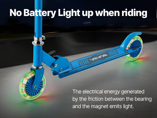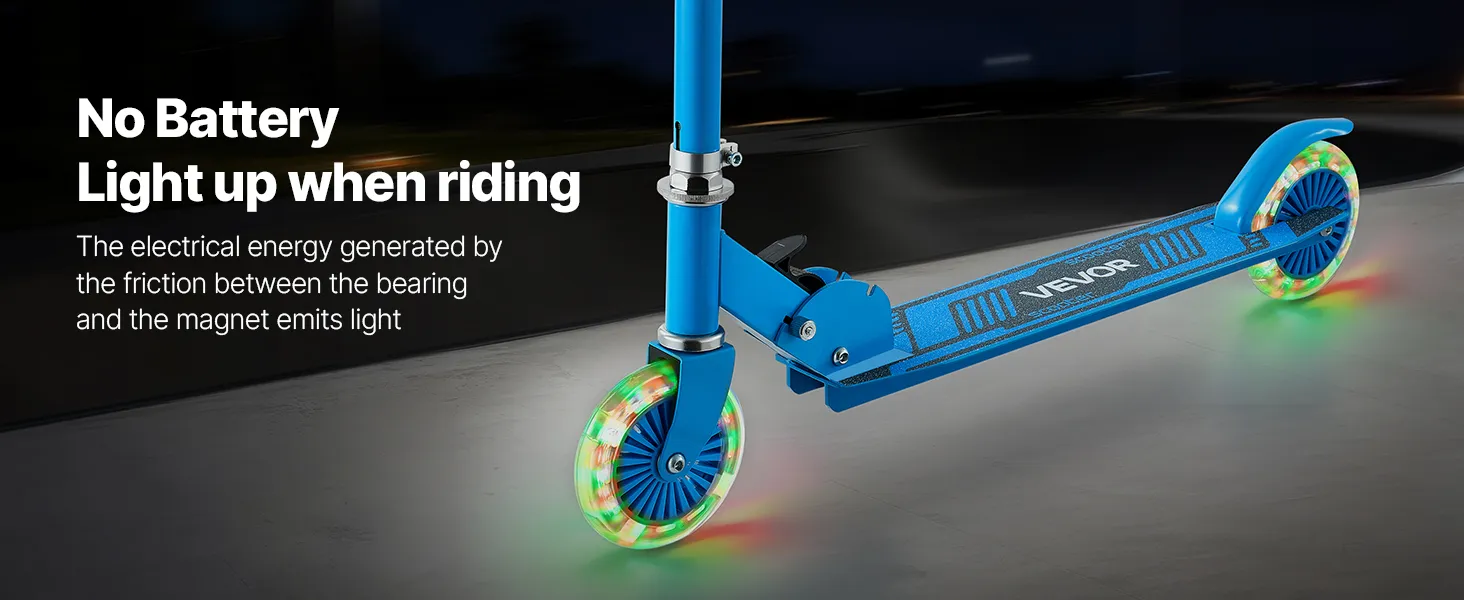 • 5-Inch Light-Up Wheels: Kick scooter wheels light up automatically when rolling—no batteries needed! Add fun and visibility for night rides. Large 5-inch wheels glide smoothly on sidewalks, asphalt, wood floors, and tiles with fewer bumps and less noise