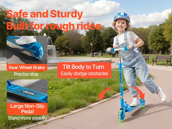 • Lean-to-Turn Steering: Kids steer this scooter for kids by leaning—no handlebar twisting needed. This intuitive design helps kids develop balance and coordination. Ideal for beginners, it’s easy to learn and fun to master