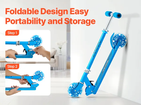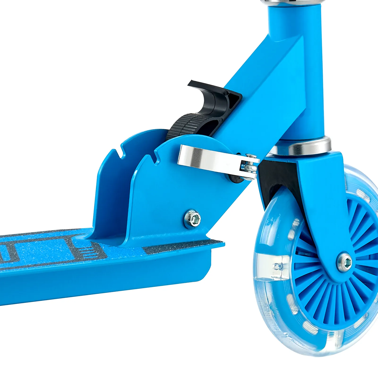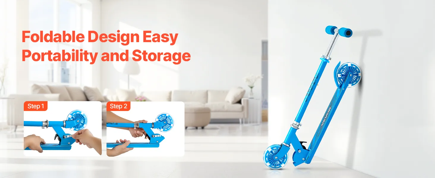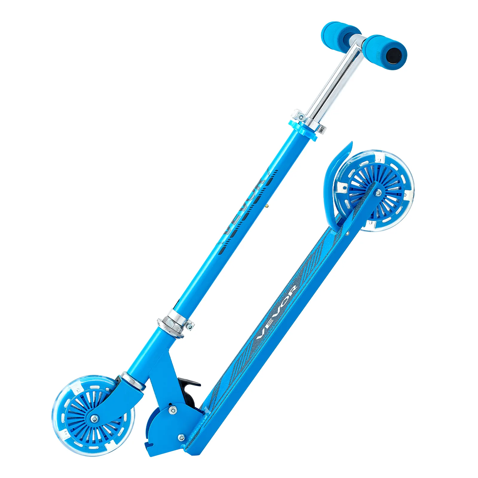 VEVOR Складной Детский Самокат, 2 Колеса, Светящиеся Колеса, Регулируемая Высота, Противоскользящая Платформа, 3+ Лет до 49.9 кг, Синий
