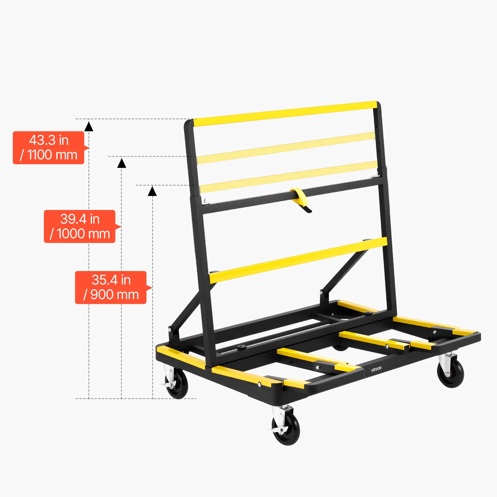 VEVOR Drywall Cart Dolly, 816 kg Load Capacity, Steel Panel Dolly with 4 Swivel Casters & Expandable Deck, Foldable Panel Truck Cart with Tie-Down Strap for Handling Plywood, Plasterboard, Glass
