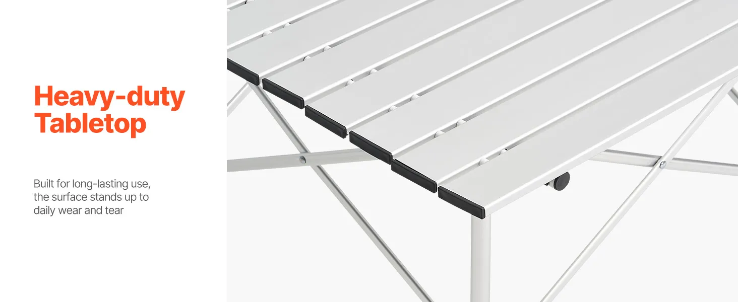 VEVOR Folding Camping Table, Portable Roll Up Side Tables, Small Lightweight Aluminum Beach Table, Compact with Carry Bag, for Outdoor Cooking, Tailgating, Grilling, Picnic, Travel, Silver