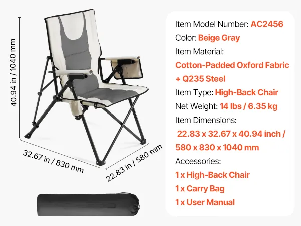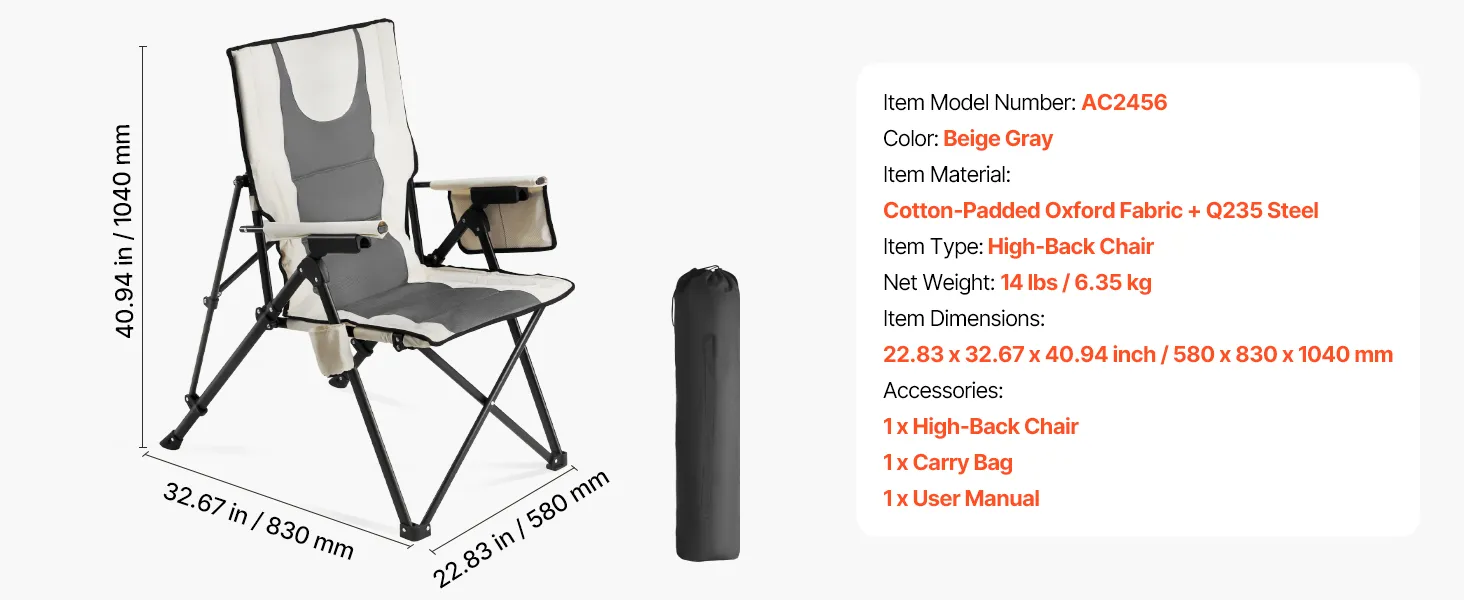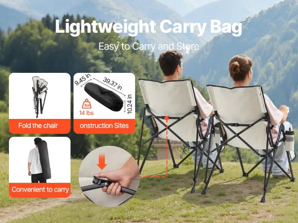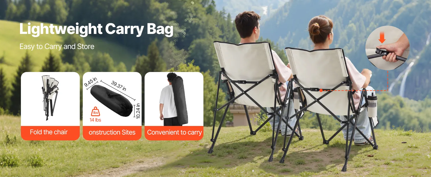 • High-Back Design: Measuring about 22.83 x 32.67 x 55.11 in, this large-size folding camping chair offers ample room and ergonomic high-back support for long-lasting seating comfort during extended use.
