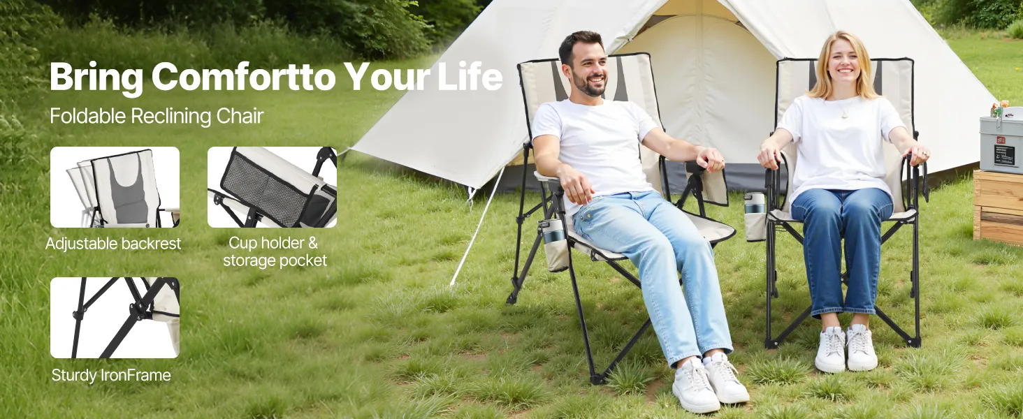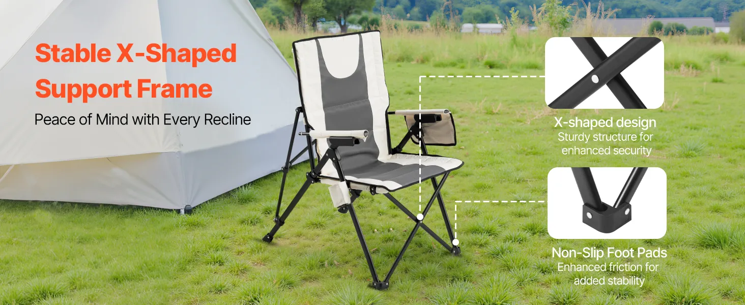 Складной кемпинговый стул VEVOR с 3 углами наклона, высокой спинкой, мягкий, с подлокотниками и подголовником, до 118 кг