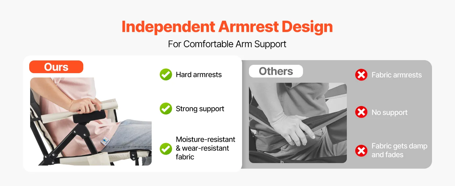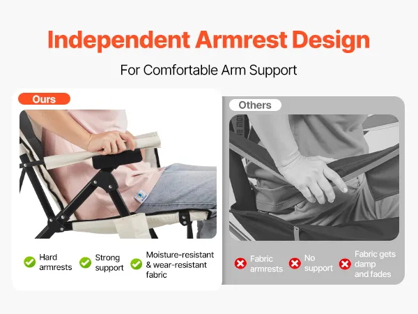 • Adjustable Recline Positions: Our lawn chair features 3 reclining angles with front-to-back movable armrests for personalized seating comfort. Ideal for reading, relaxing, or quick naps—relieves shoulder, neck, and arm fatigue.