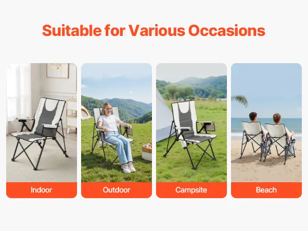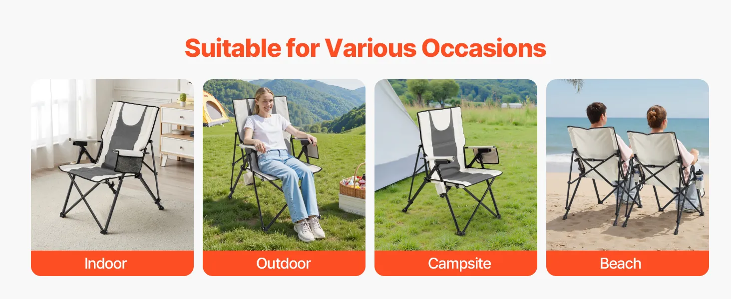 • Easy to Fold: This camp chair can be easily folded without tools. Whether for travel or storage, setup and takedown are fast and effortless—saving your time and energy.