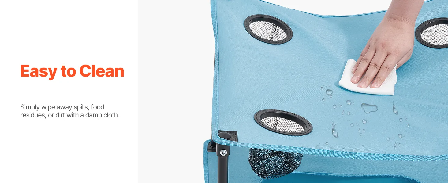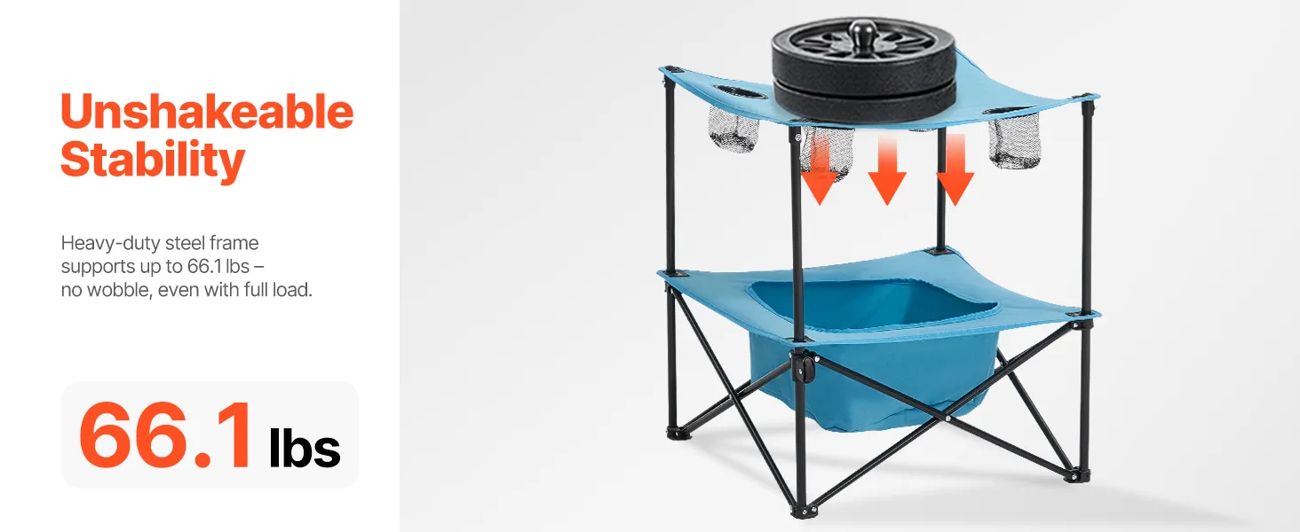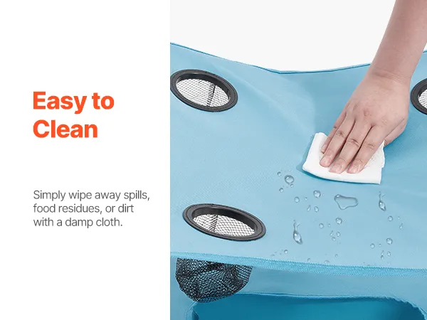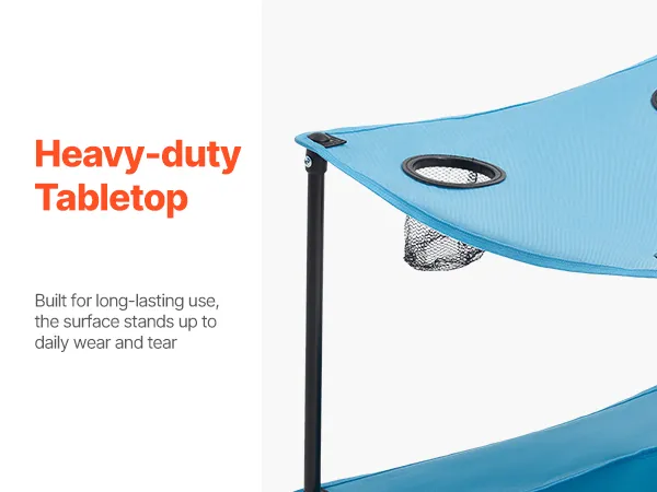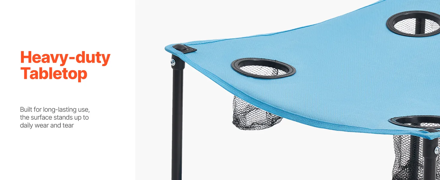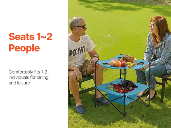 VEVOR Folding Camping Table, Portable Outdoor Lightweight Picnic Table, 600D Oxford Fabric Waterproof Canvas Travel Beach Tables, with 4 Cup Holders, Carry Bag, for Tailgating Camping Picnic, Blue