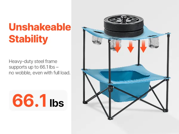 Q: What are the dimensions of the tabletop?A: The tabletop measures 22x22 inch (560x560 mm), providing ample space for meals, gear, or activities.Q: How much weight can the table support? Is it stable?A: The table supports up to 66 lbs (30 kg) and features a robust frame with legs that resist wobbling.Q: How much does the table weigh? Is it easy to move?The table is lightweight at 1.7 kg / 3.7 lbs, folds compactly, and is easy to move with the included storage bag.Q: Is assembly required? How complicated is it?A: No tools are needed – simply follow the included installation manual for assembly. Setup is quick and intuitive for anyone.