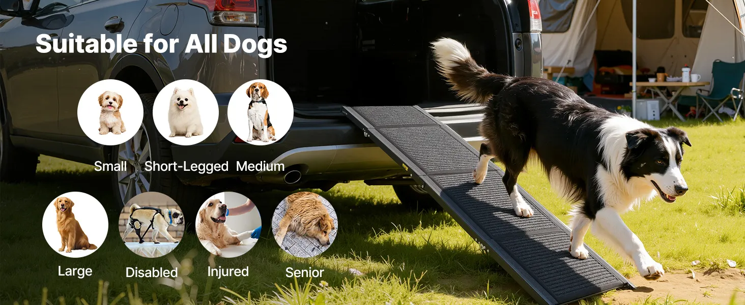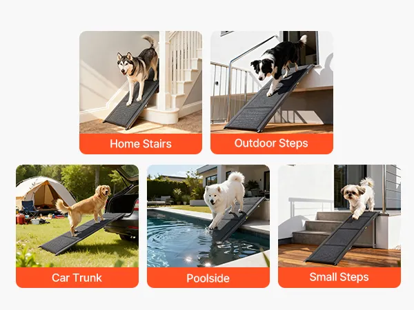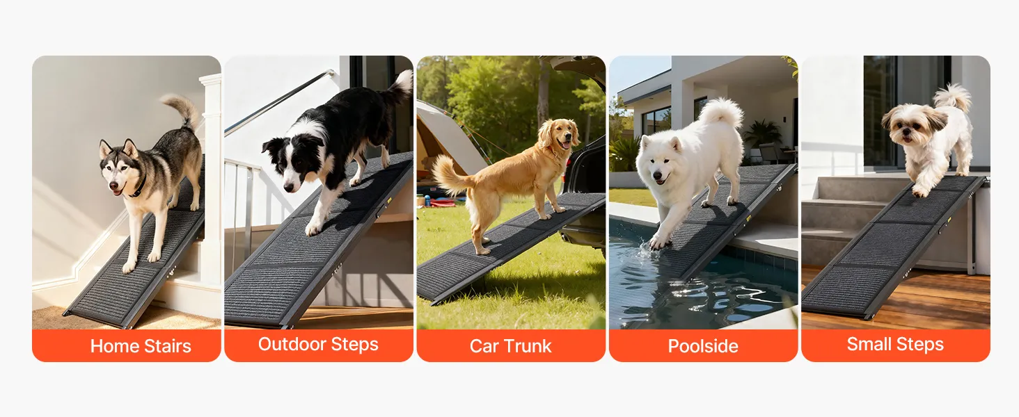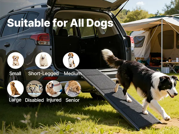 • Versatile for All Pets & Scenarios: The outdoor dog car ramp is secure to use for small, medium, large, short-legged, senior, injured, or disabled pets. Ideal for cars, stairs, sofas, or poolside, allowing pets to move freely in various situations