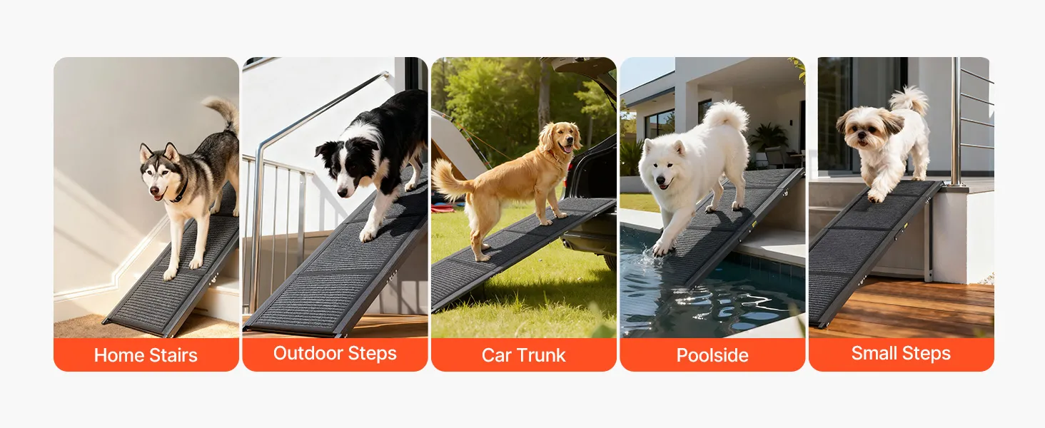 The pet ramp for large dog is ideal for cars, indoor stairs, outdoor steps, RVs, or poolside. Reduces joint stress, ensuring pets move securely and comfortably in every scenario, giving you peace of mind during outings.
