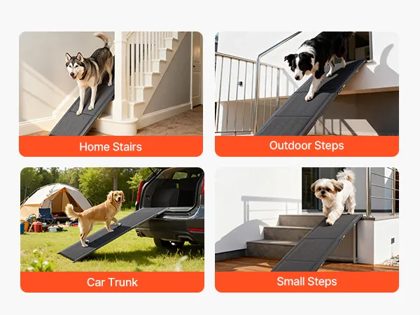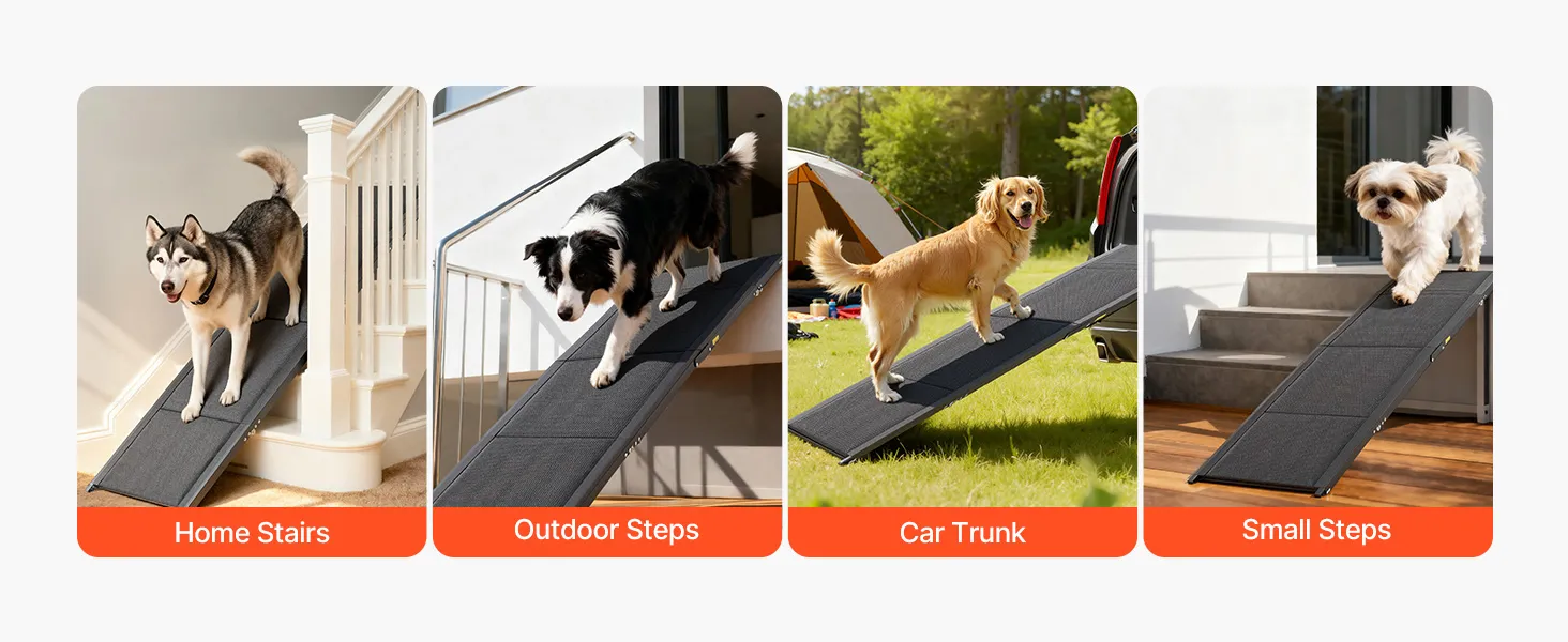 The pet ramp for large dog is ideal for cars, indoor stairs, outdoor steps, RVs, or poolside. Reduces joint stress, ensuring pets move securely and comfortably in every scenario, giving you peace of mind during outings.
