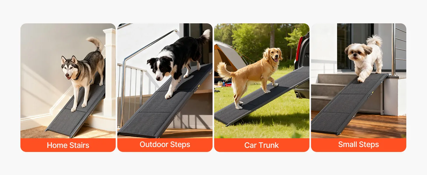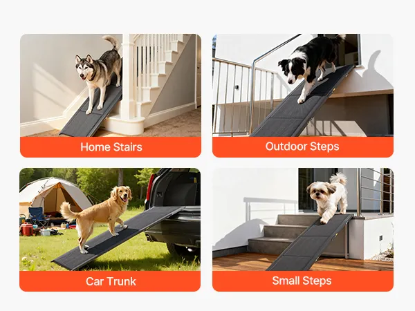 • Versatile for All Pets & Scenarios: The outdoor dog car ramp is secure to use for small, medium, large, short-legged, senior, injured, or disabled pets. Ideal for cars, stairs, sofas, or poolside, allowing pets to move freely in various situations