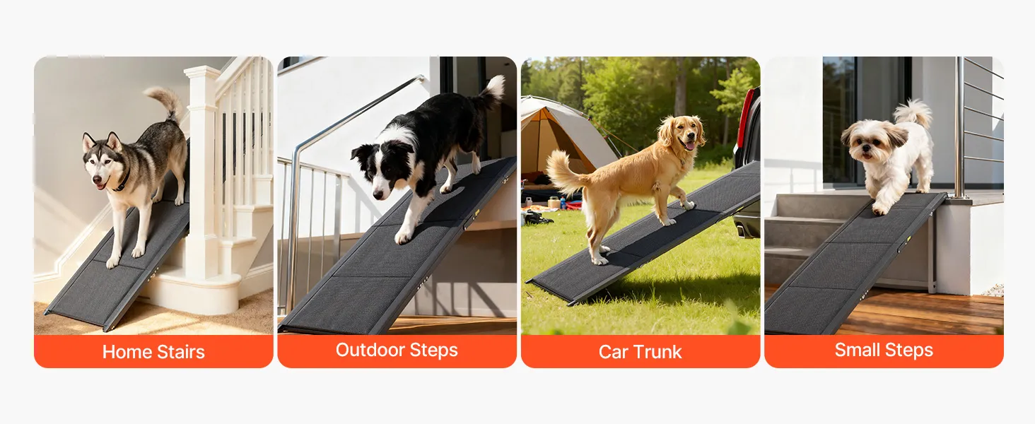 The pet ramp for large dog is ideal for cars, indoor stairs, outdoor steps, RVs, or poolside. Reduces joint stress, ensuring pets move securely and comfortably in every scenario, giving you peace of mind during outings.