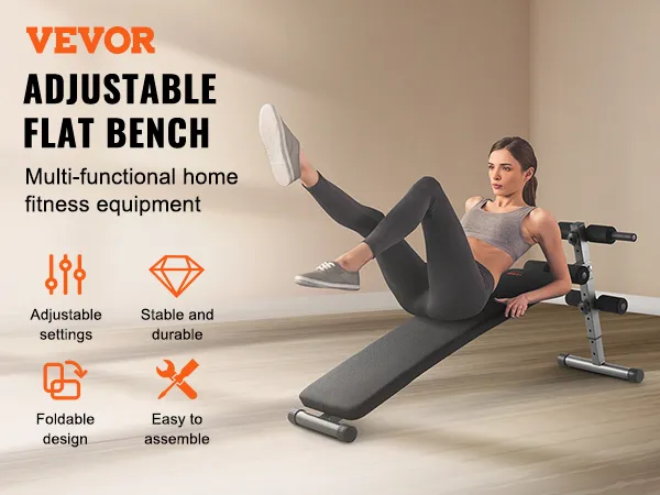 This sit up workout bench features adjustable height and foot support, built with a triangular heavy-duty steel frame for great stability. It folds up easily for quick storage and is easy to assemble. Ideal for both beginners and experienced fitness enthusiasts.