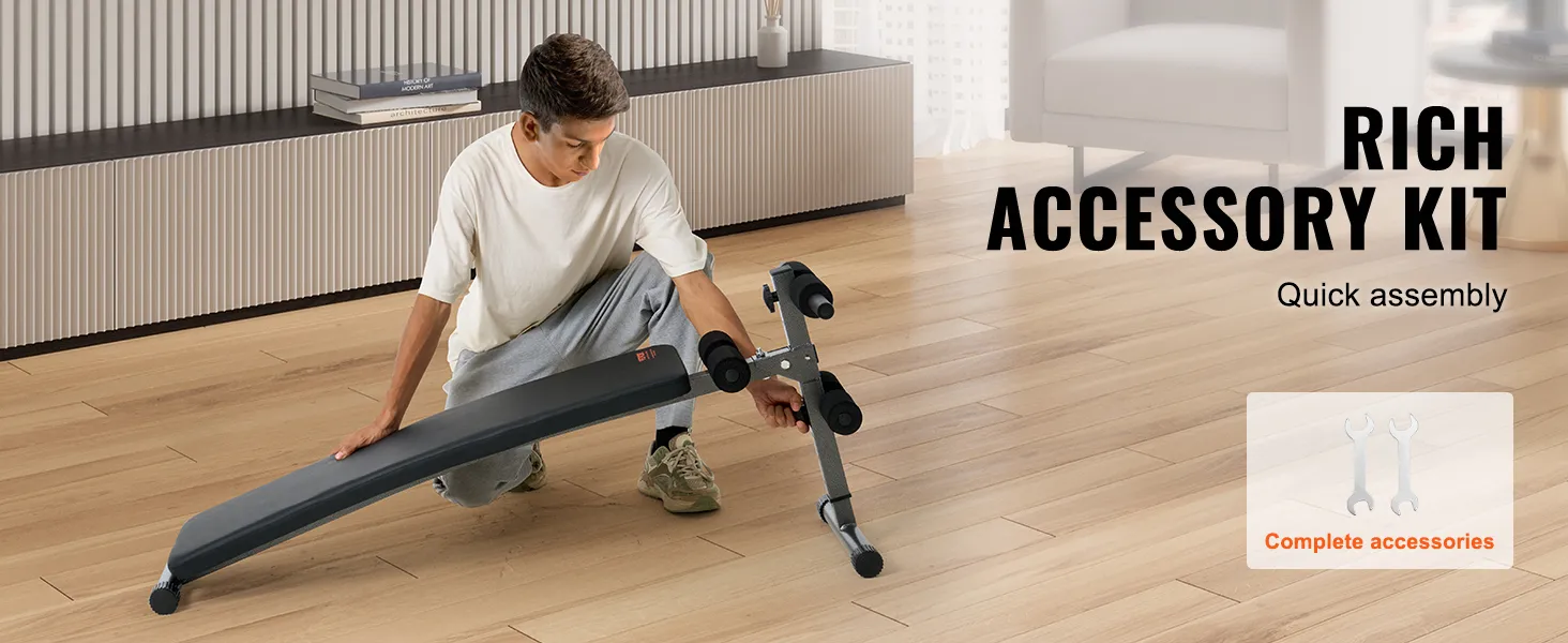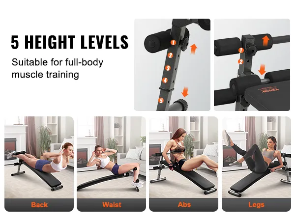 VEVOR Sit Up Bench, Folding Curved Decline Ab Bench, with 5 Adjustable Height Settings, Heavy-Duty Steel, Non-Slip Design, 226 Kg Capacity for Home Gym Workouts, Strength Training, Full Body Muscles