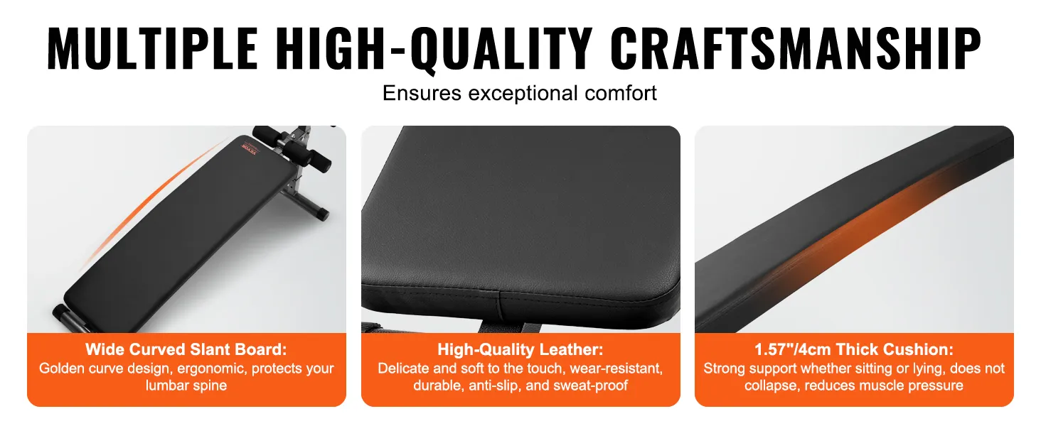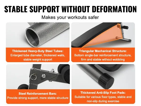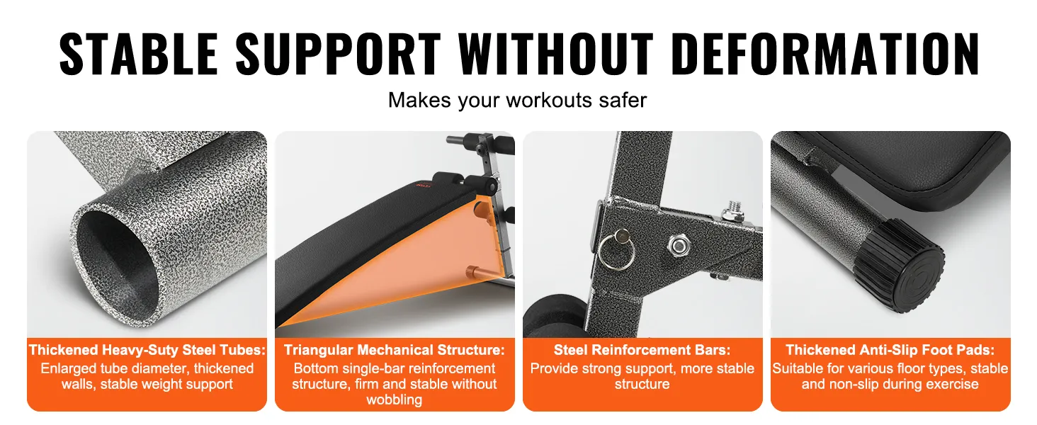 Built with a heavy-duty steel frame, this ab bench boasts great load-bearing capacity and stability. Ideal for different body types, it stays secure even when you lifting heavy dumbbells without wobbling or slipping, gripping any floor surface to ensure secure workouts.