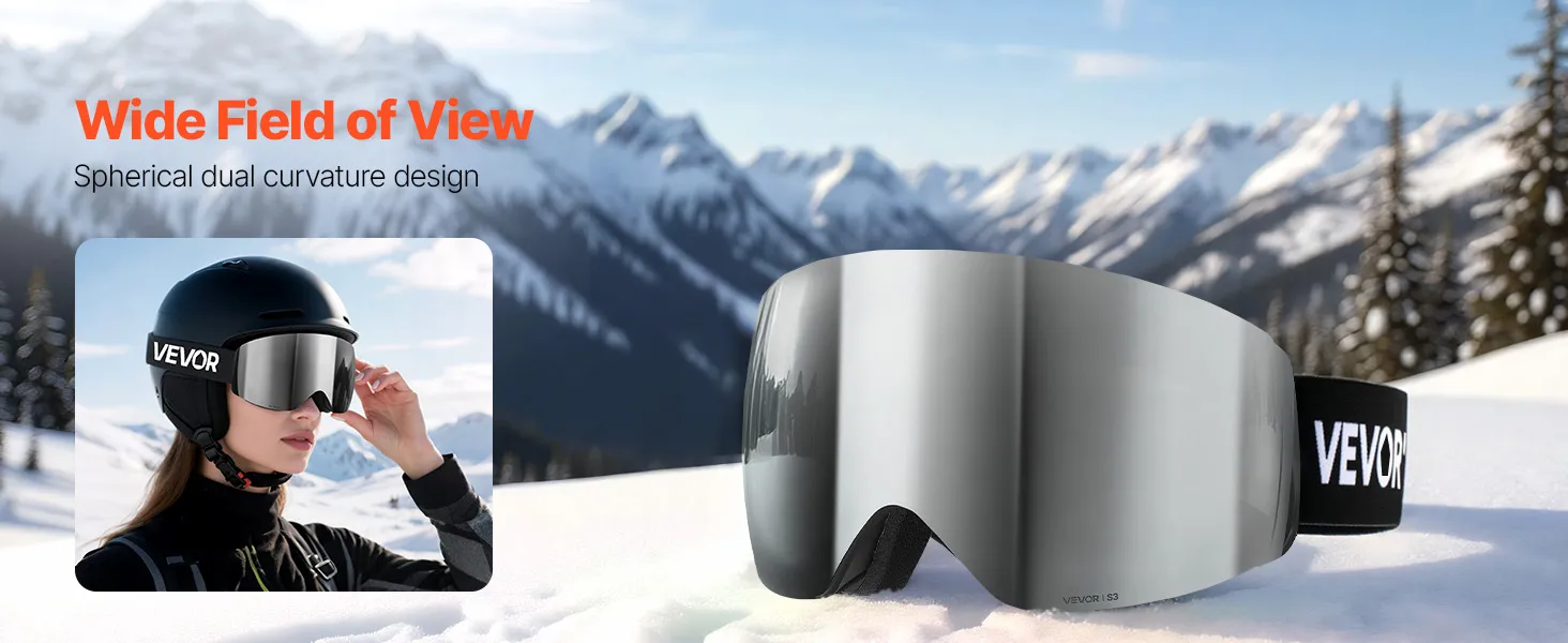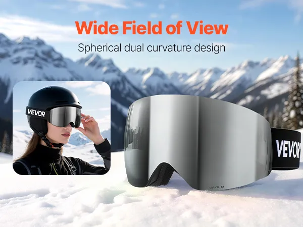 The innovative spherical dual-curve lens of the snow goggles delivers a wide, wraparound field of view and significantly reduces blind spots. The curve matches your helmet for seamless fit and full protection at high speeds and on challenging terrain.