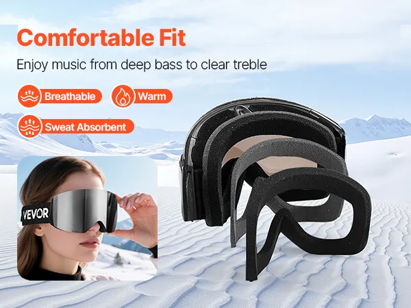 Soft triple-layer foam of the snowboard goggles gently contours to your face, absorbing shock and blocking cold air. The breathable, moisture-wicking design keeps you warm, sweat-free, and comfortable for all-day skiing.