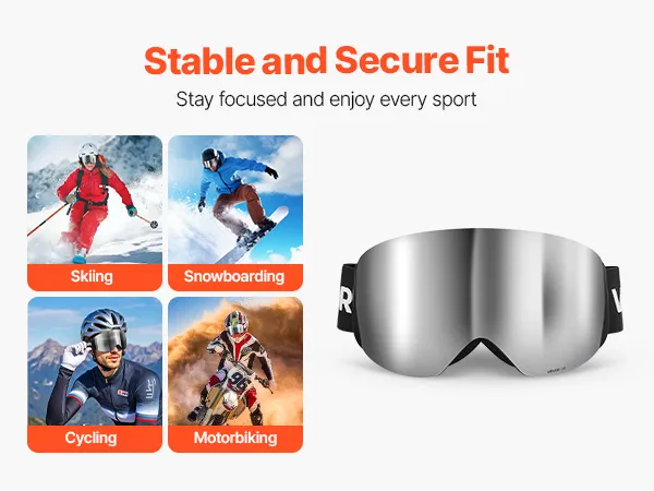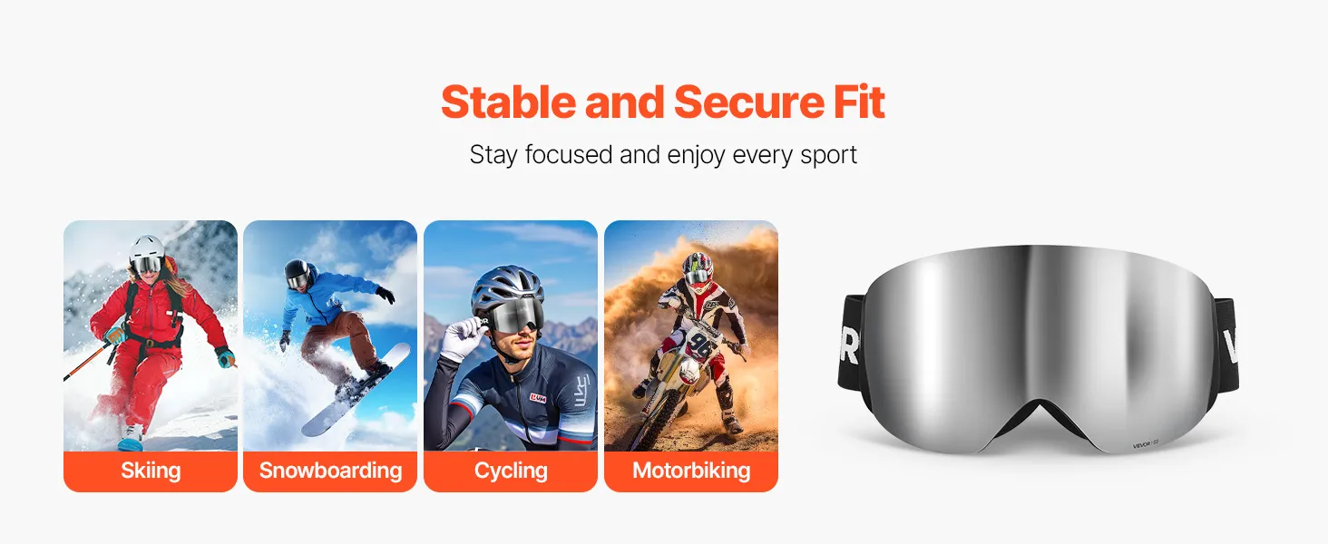 The snug fit hugs your face shape, so the skiing goggles stay in place even during intense activity. Clear, fog-free vision keeps you focused whether you’re skiing, snowboarding, or cycling.