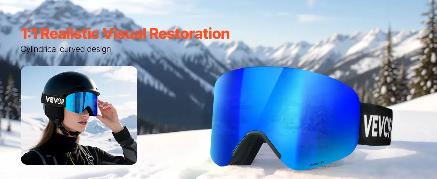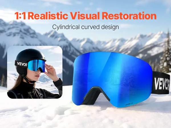 The advanced cylindrical lens of the snow goggles offers true 1:1 distortion-free vision, restoring a natural view of the slopes. The gentle curve reduces visual warping, making it ideal for pro skiers who demand precise terrain judgment.