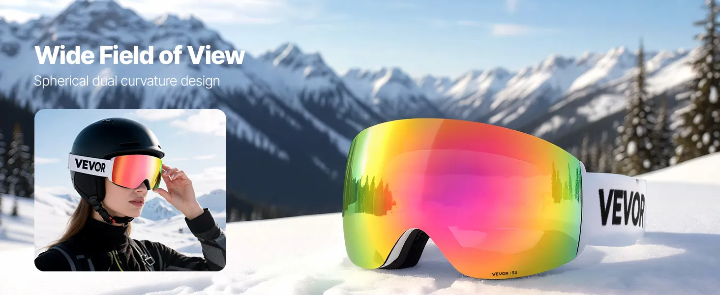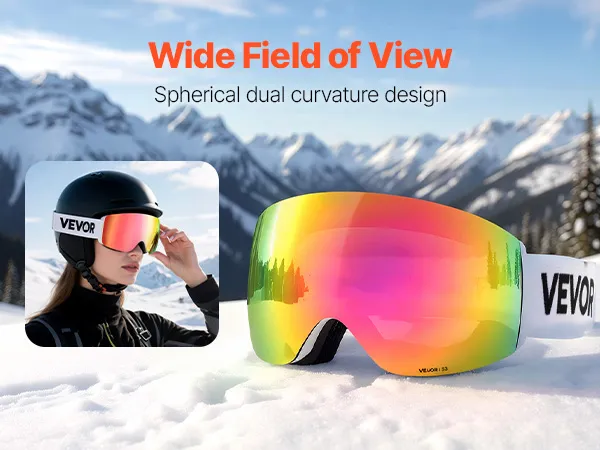 The innovative spherical dual-curve lens of the snow goggles delivers a wide, wraparound field of view and significantly reduces blind spots. The curve matches your helmet for seamless fit and full protection at high speeds and on challenging terrain.