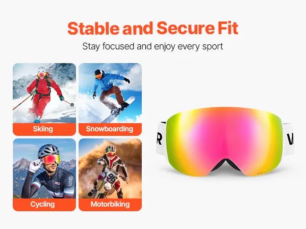 The snug fit hugs your face shape, so the skiing goggles stay in place even during intense activity. Clear, fog-free vision keeps you focused whether you’re skiing, snowboarding, or cycling.