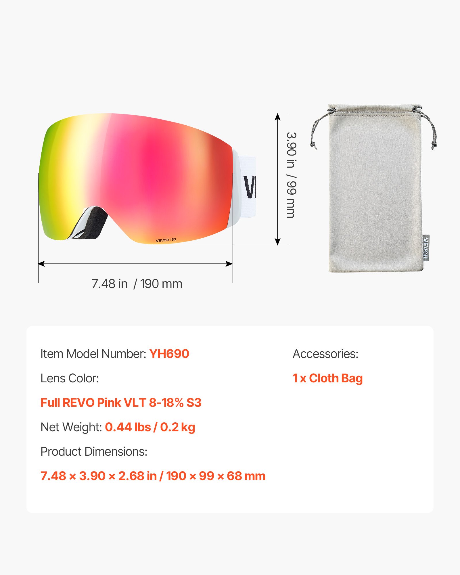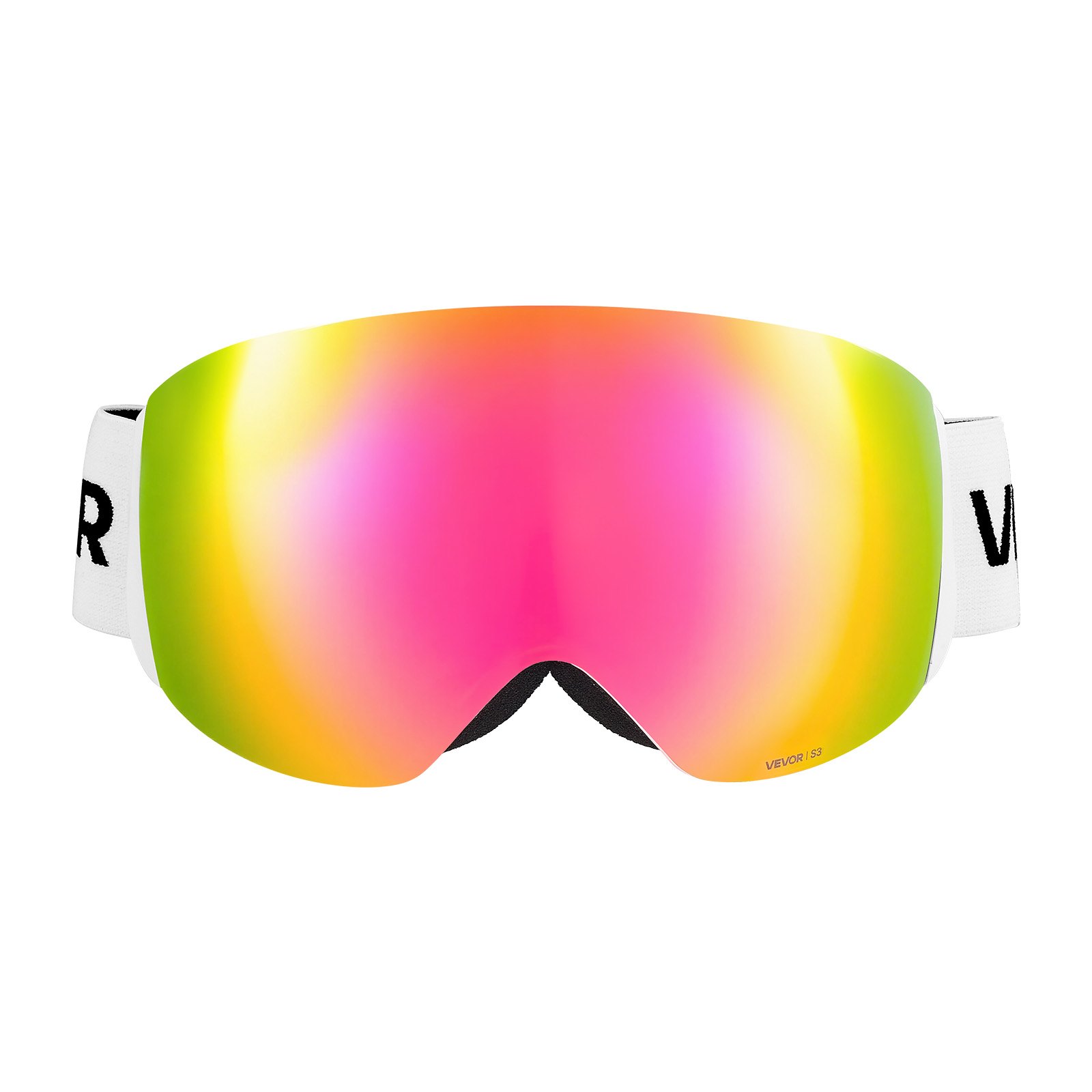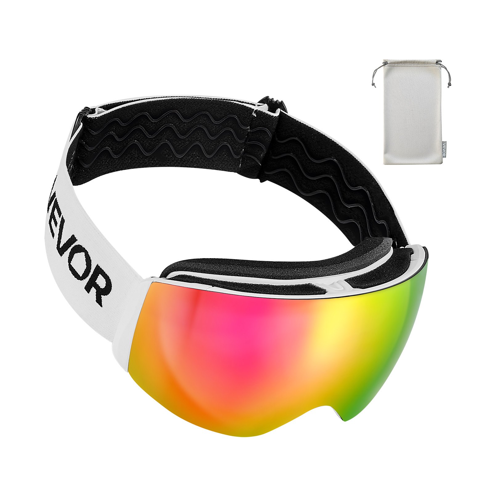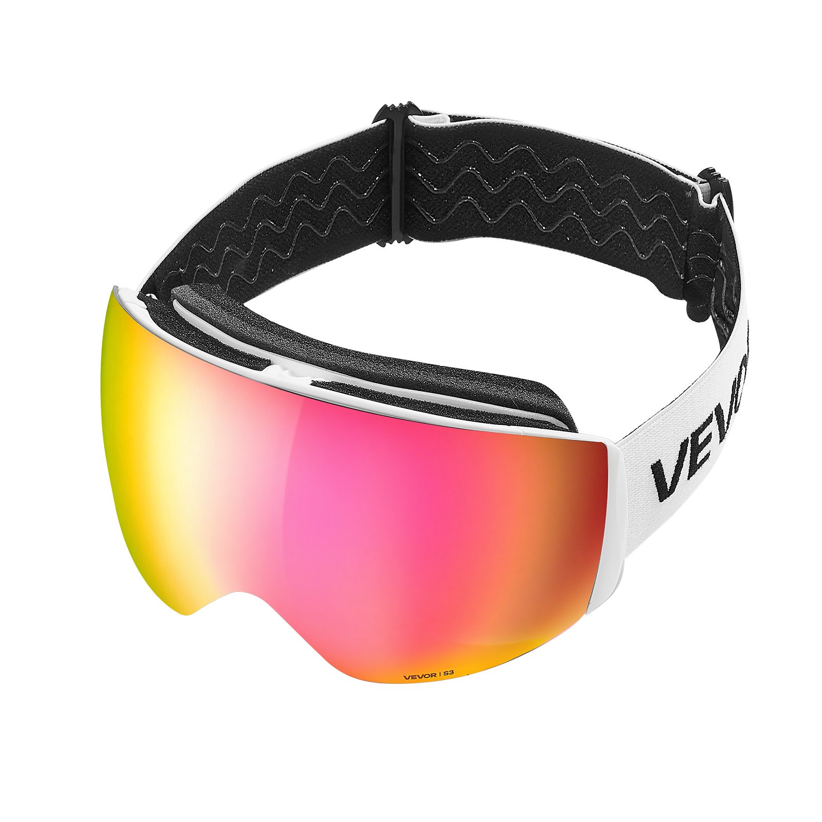 VEVOR Frameless Ski Goggles, Spherical Lens with Pink Revo Coating, OTG Anti fog Snow Goggles for Men Women Youth, TPU Frame & Ventilation Structure, Suitable for Skiing, Skating, Snowboarding