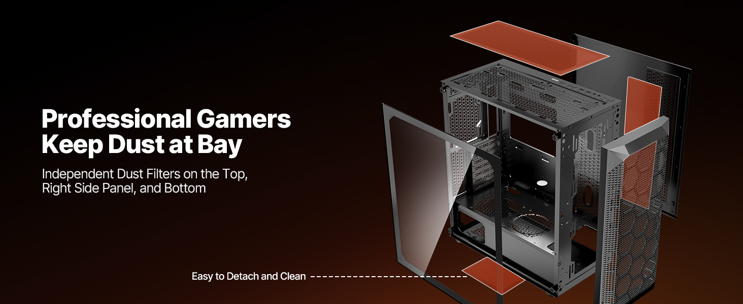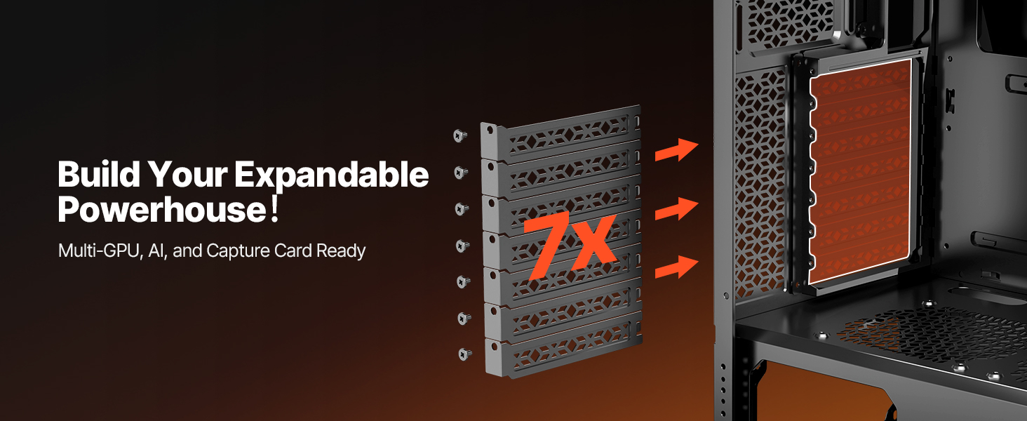 О: Нет! Корпус оснащен 3 предустановленными 140-мм ШИМ-вентиляторами и оптимизированной конструкцией воздушного потока для поддержания низких температур. Даже с разогнанным процессором (i9-14900K) или несколькими графическими процессорами он обеспечивает стабильную производительность.