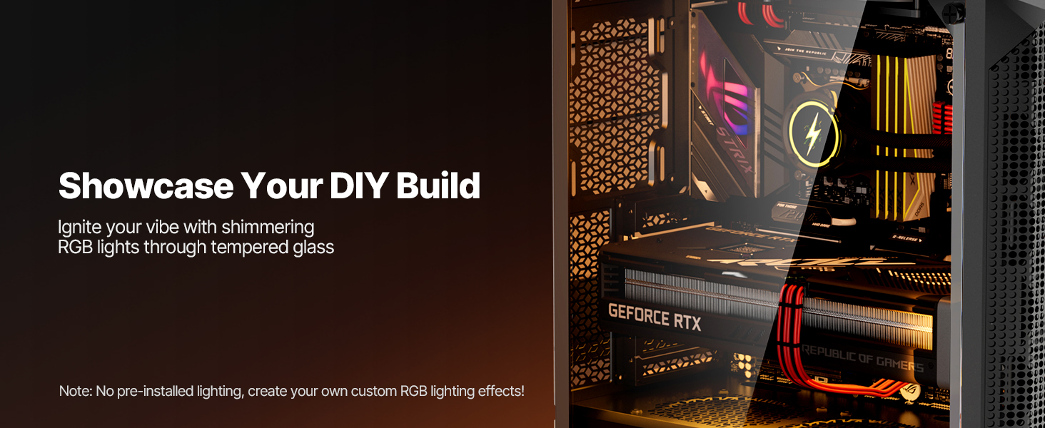 О: Корпус изготовлен из стали SPCC толщиной 0,8 мм с усиленными углами и противоударной конструкцией для дополнительной защиты. Одна боковая панель изготовлена из закаленного стекла, что примерно в два раза повышает ударопрочность стандартных корпусов.