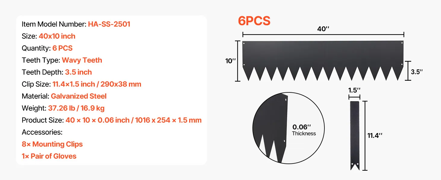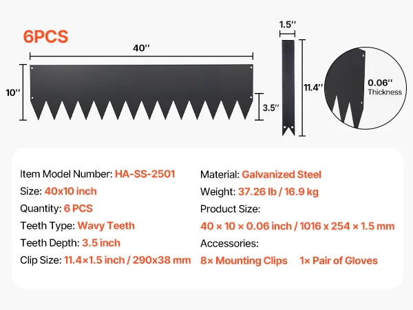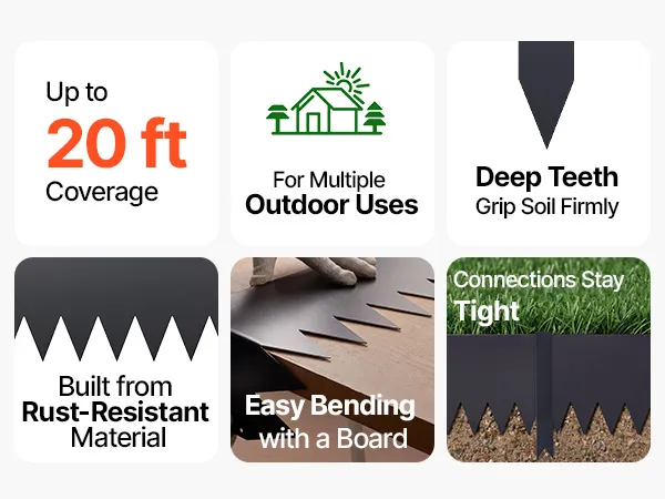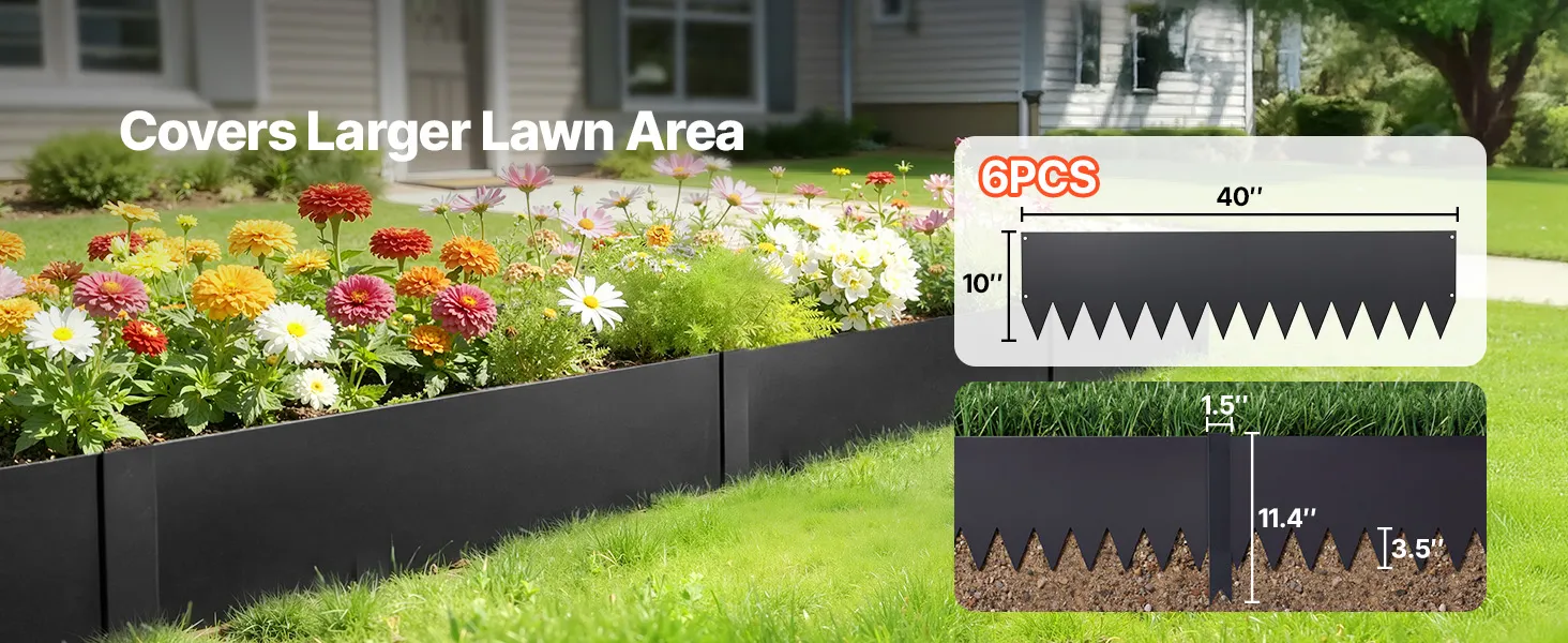 • Complete Set, Ready to Use: This metal garden edge border set includes 6 edging sections, 8 clips, and 1 pair of gloves. Extended spikes slide into soil smoothly, making setup easier and more enjoyable