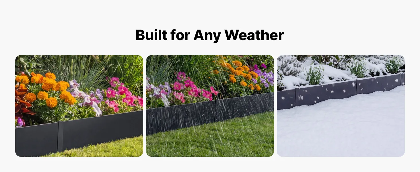 • Прочная оцинкованная сталь: эта металлическая окантовка газона использует оцинкованную сталь с обработанной поверхностью, которая помогает противостоять ржавчине, выцветанию и растрескиванию. Наружные границы остаются аккуратными и надежными благодаря повседневным изменениям погоды