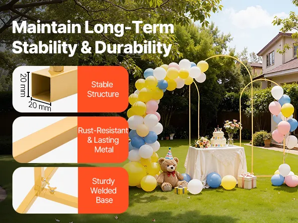 Featuring 0.79 x 0.79 in/20 x 20 mm metal square tubes, our metal arch backdrop stand is rust-resistant and non-bending for lasting use. With a reinforced welded base, it enhances stability, suitable for indoor and outdoor use.