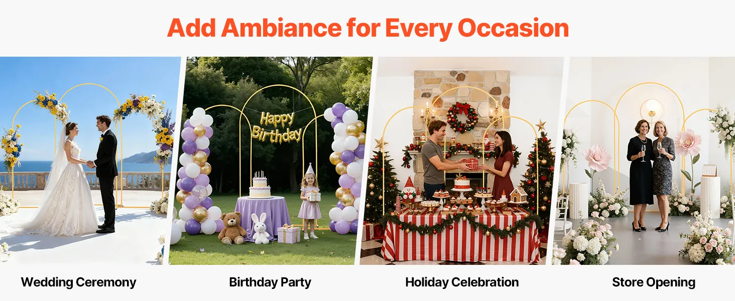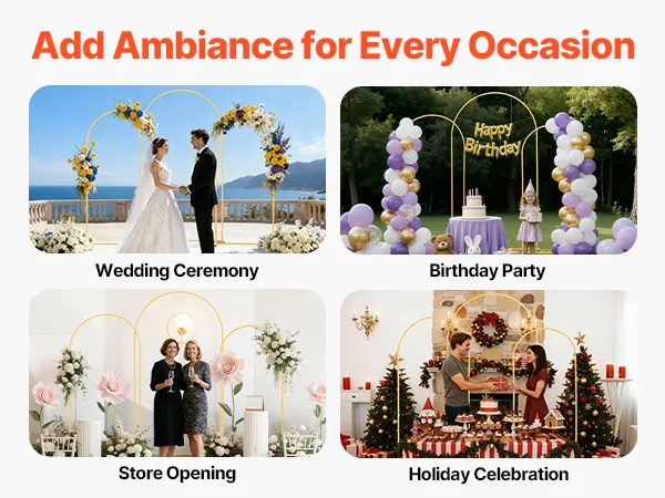 Ideal for weddings, parties, festivals, or store openings, this metal arch stand adds visual appeal and atmosphere to any occasion, making your event more elegant and eye-catching.