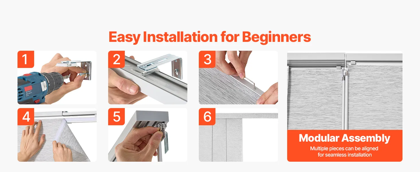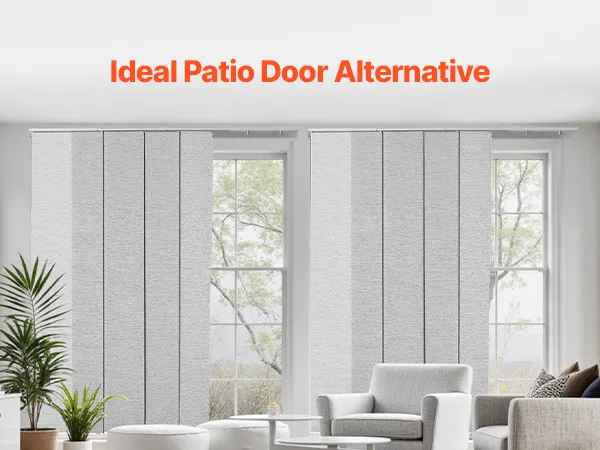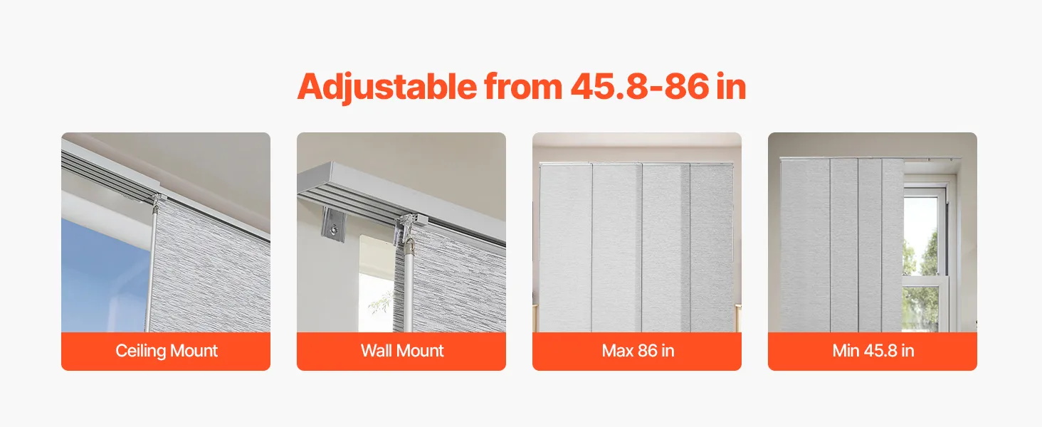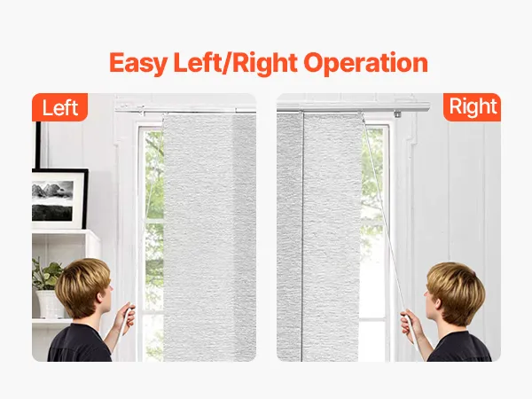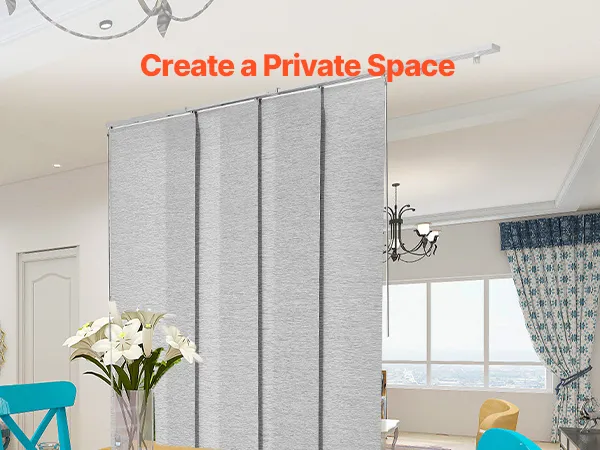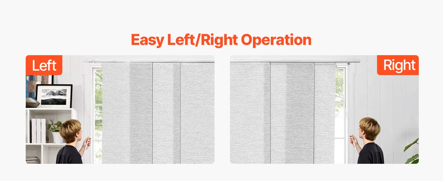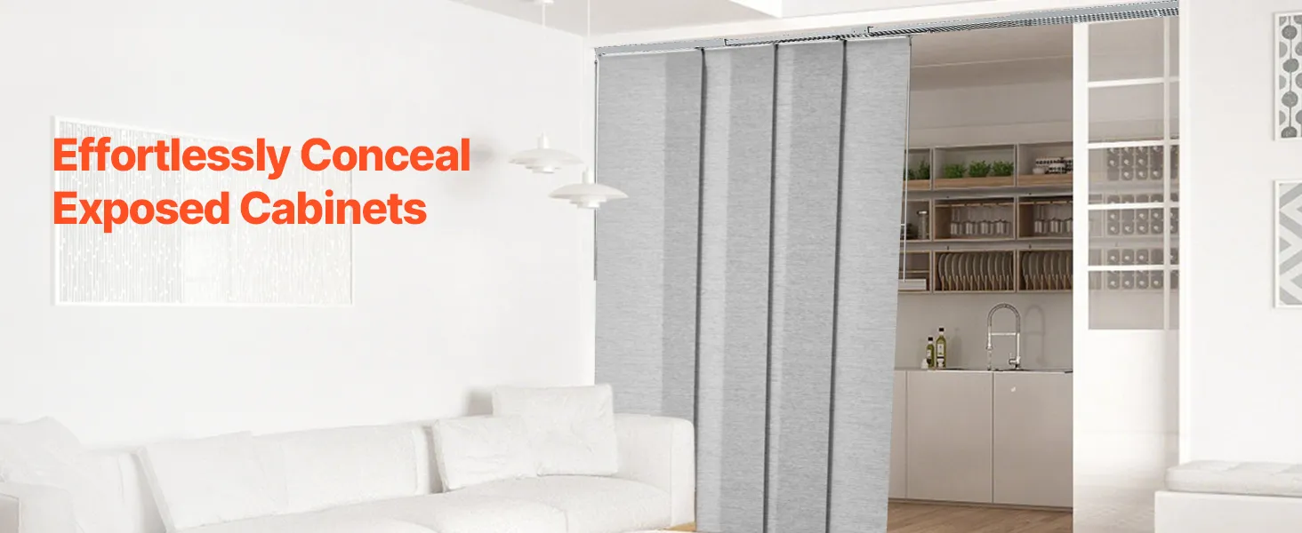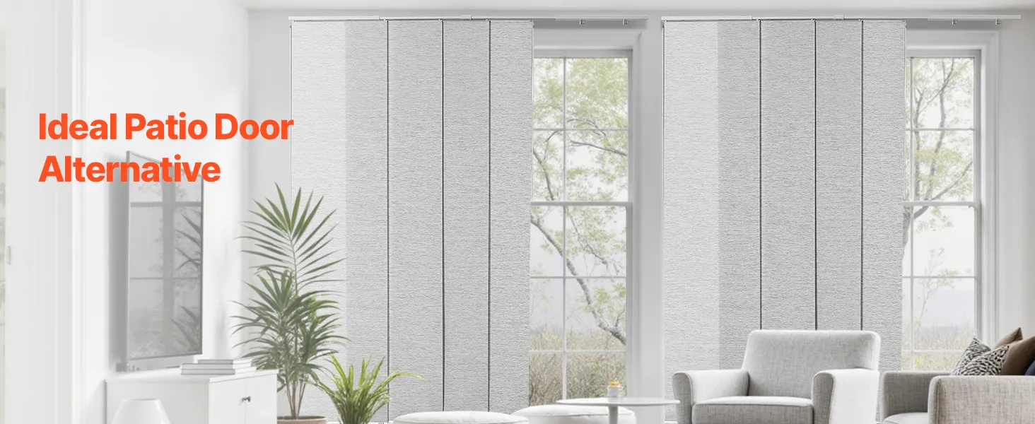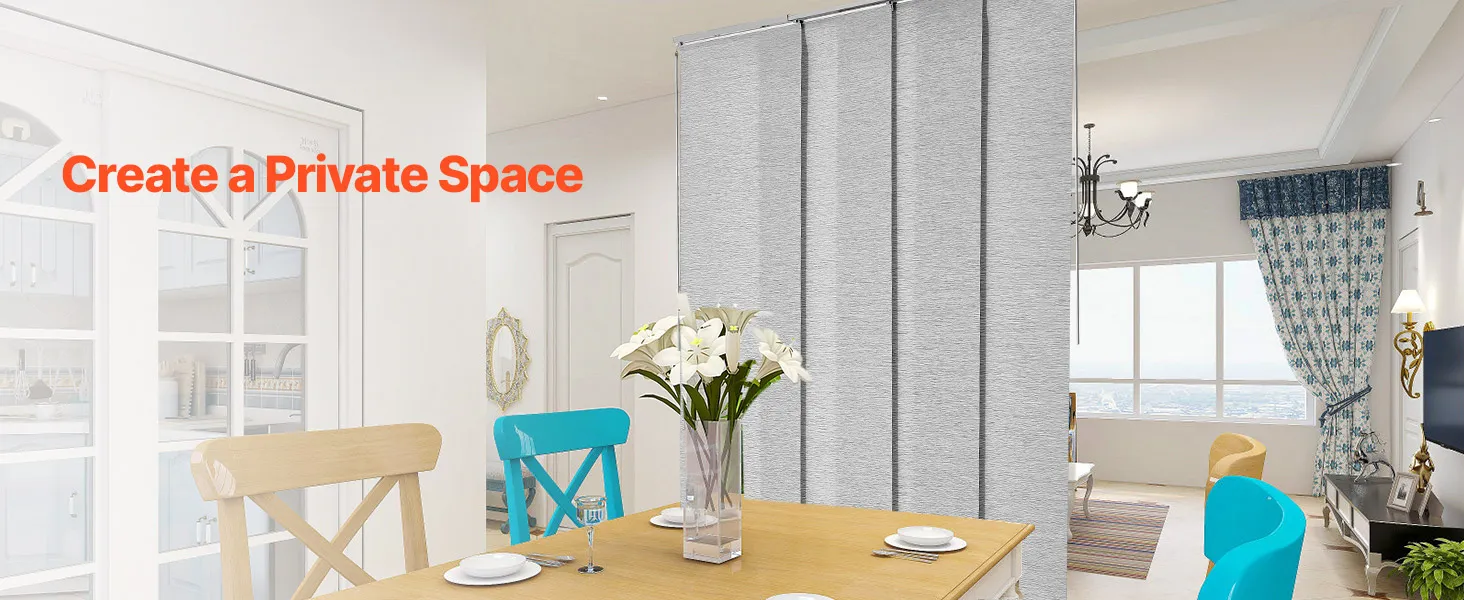 Изготовленные из прочной полиэфирной ткани, эти панельные жалюзи устойчивы к разрыву и долговечны. Верхний балдахин элегантно скрывает балдахин, создавая элегантный вид. Благодаря легкому сдвиганию влево или вправо они идеально подходят для дверей внутреннего дворика, окон от пола до потолка и многого другого, обеспечивая стиль и функциональность.