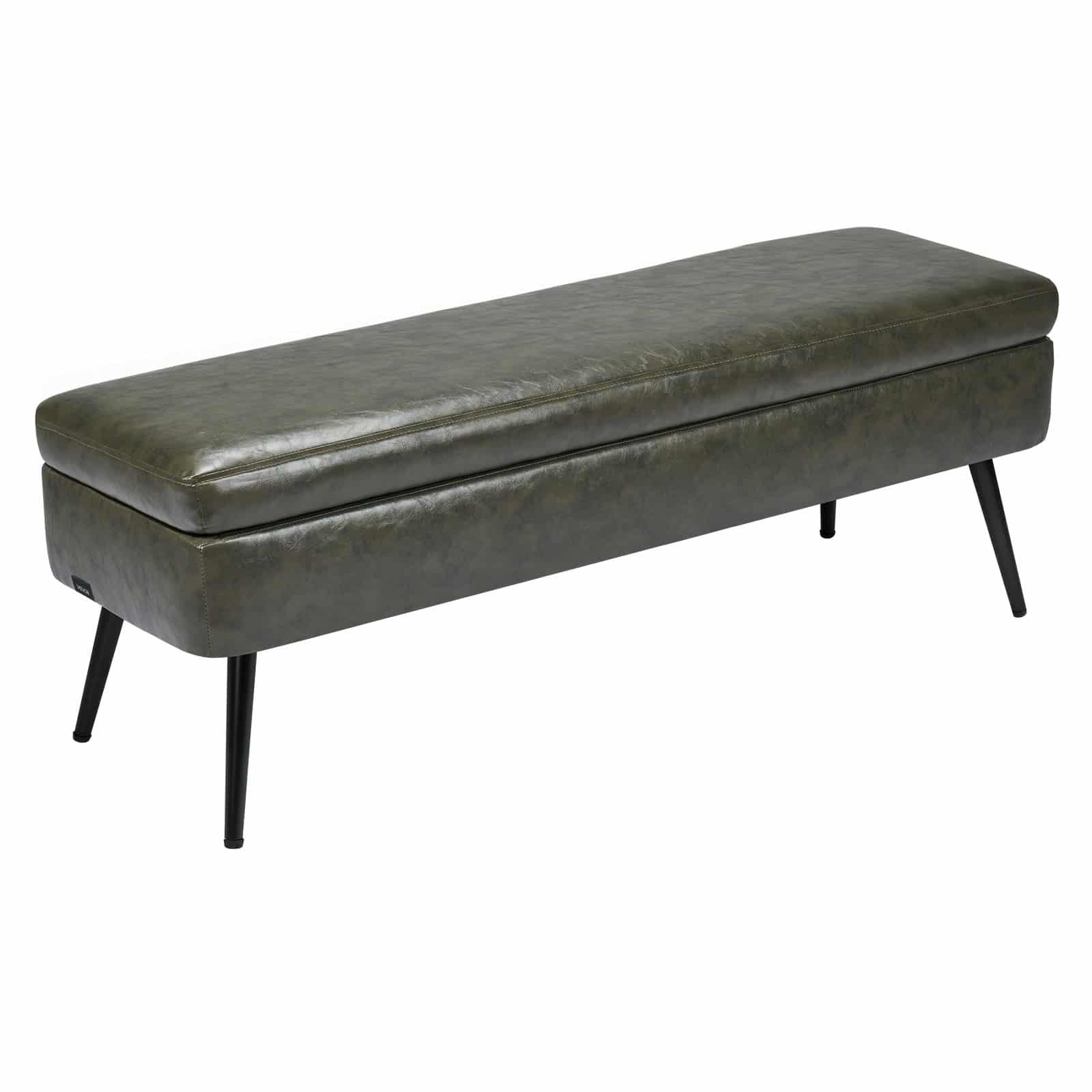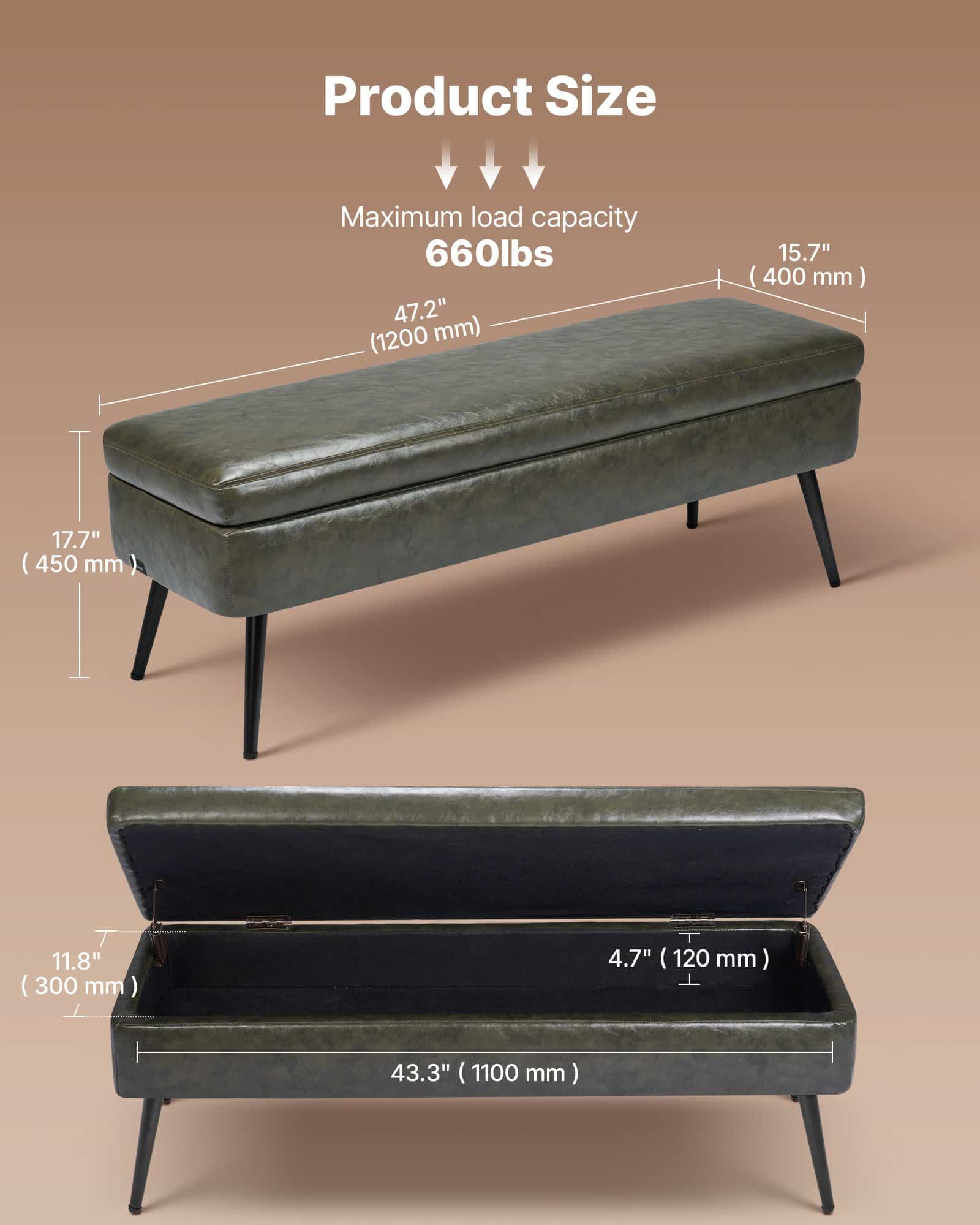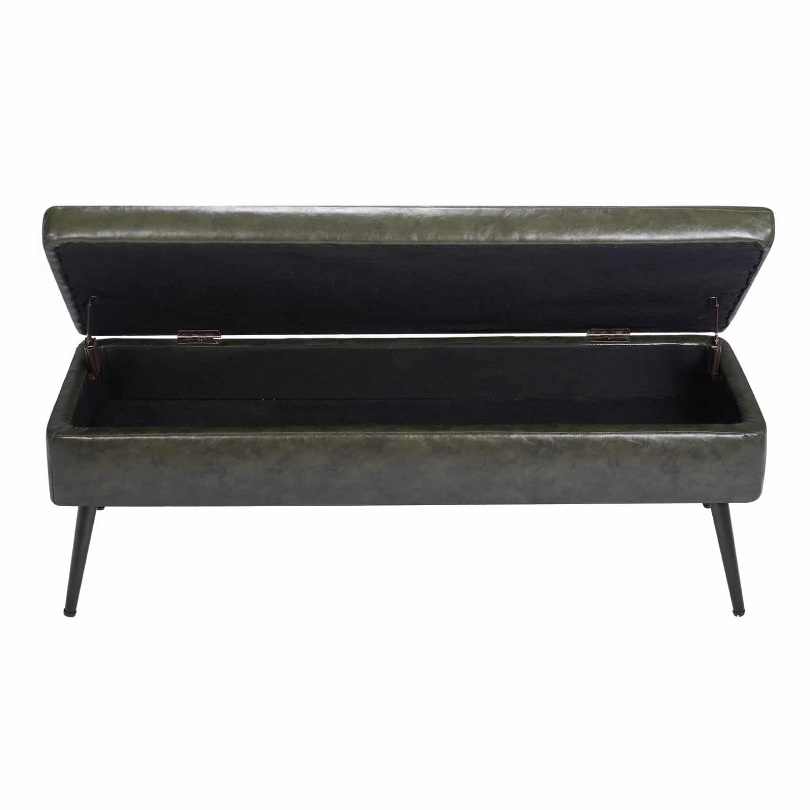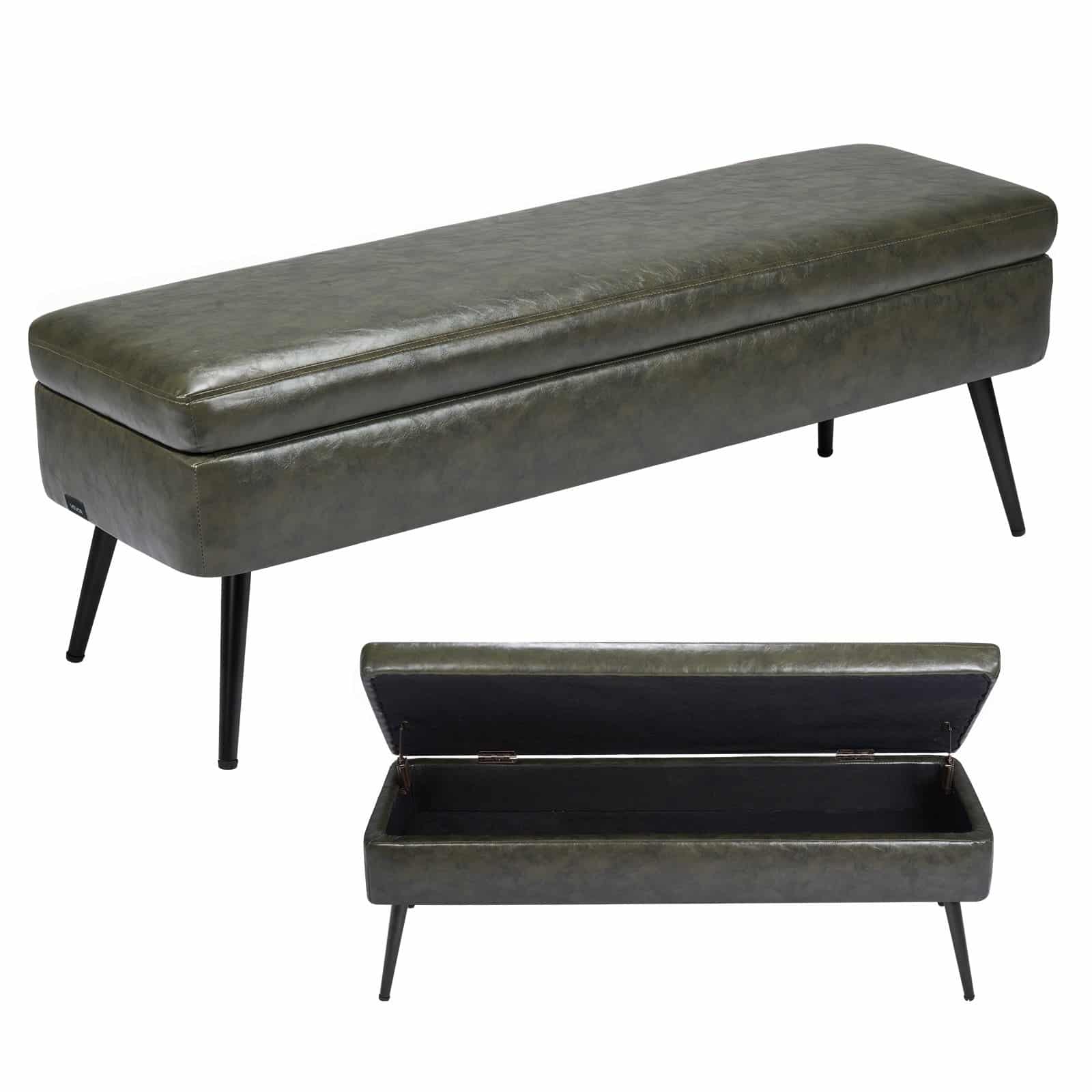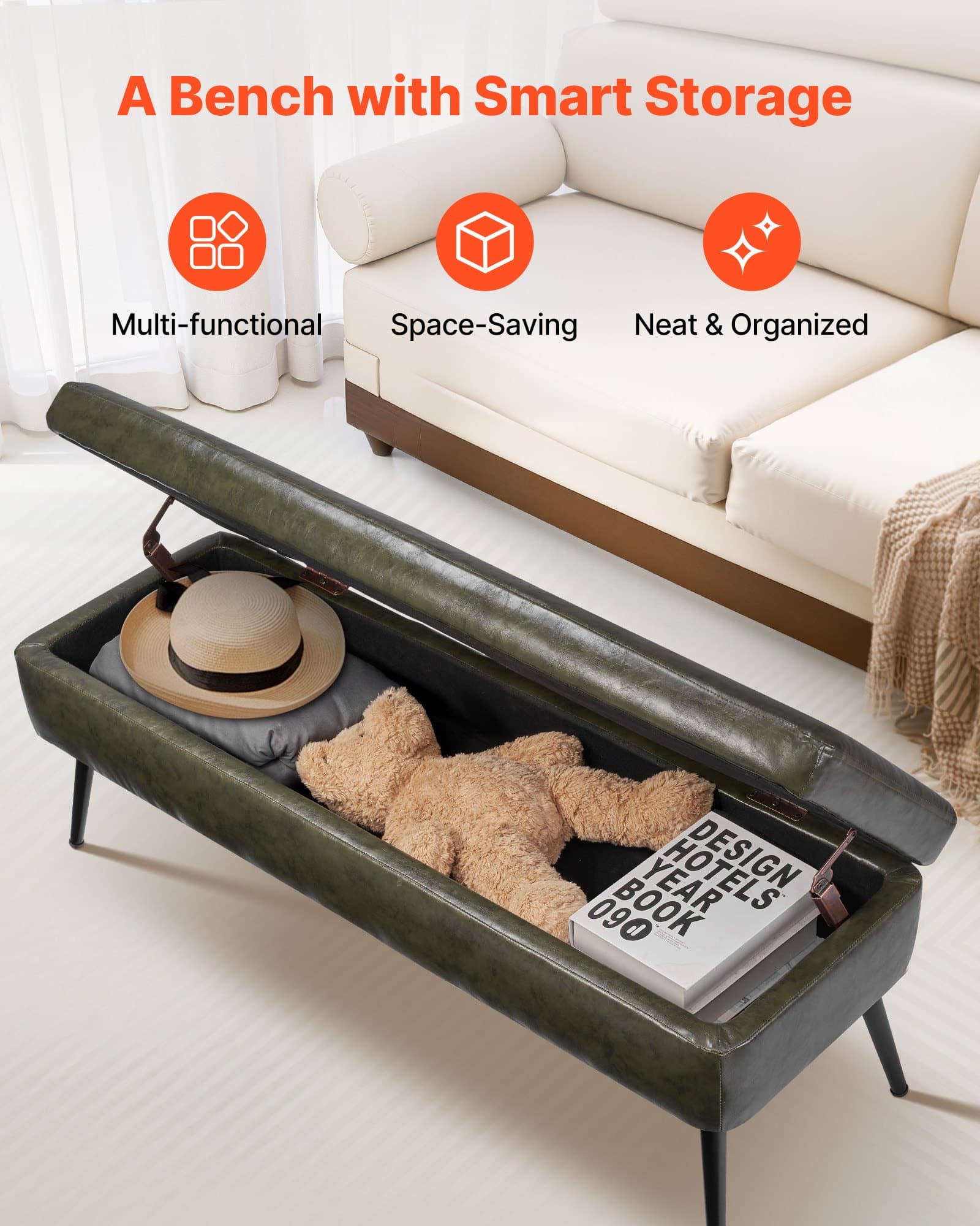 VEVOR Leather Storage Ottoman Bench, PU Leather Bench with Storage and Metal Legs, Modern Shoe Benches Seat for Entryway, Upholstered End of Bed Benches for Living Room, Dining Room, Hallway, Green