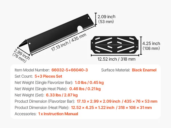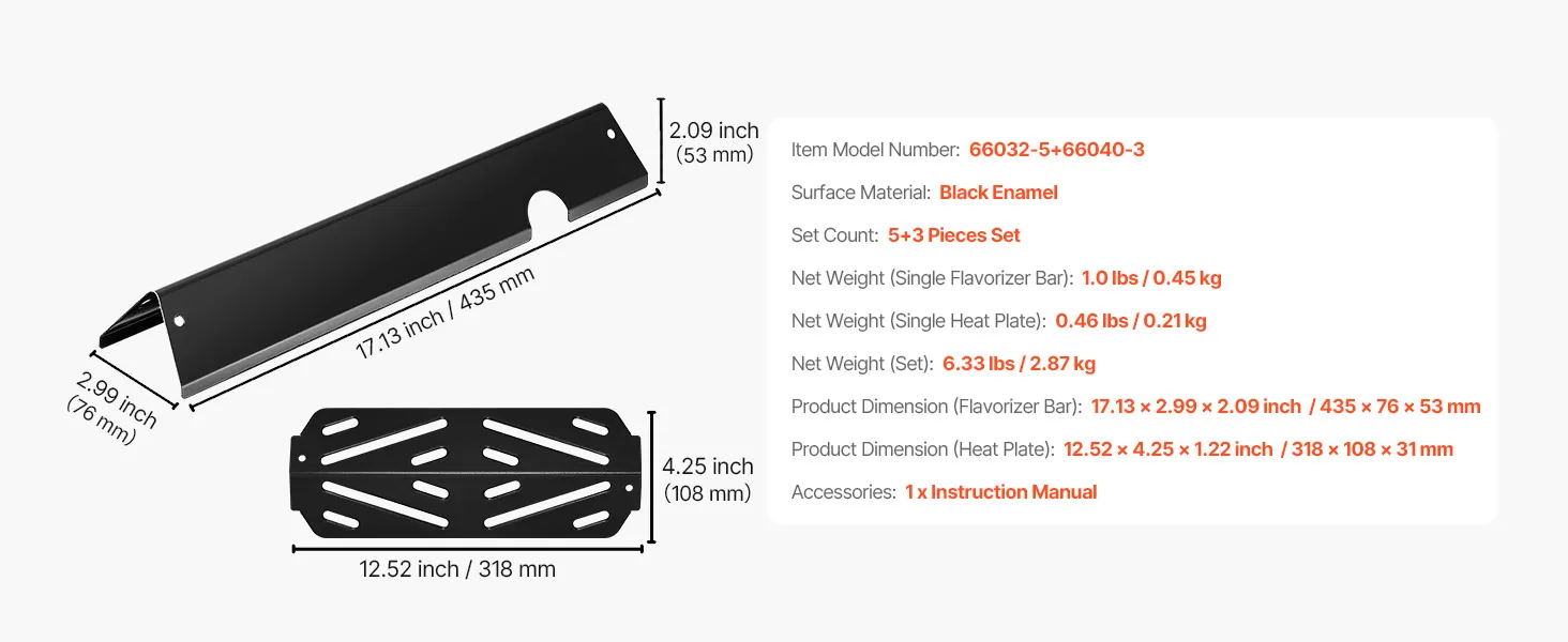 VEVOR Flavorizer Bars and Heat Deflectors, 44cm Grill Replacement Part, for Weber Genesis ll 310 315 335 340, E/S 325s, ES/SX 325s, E/S 335, EX/SX/EPX-335 Grills, Porcelain-enameled Steel, 8 Pack