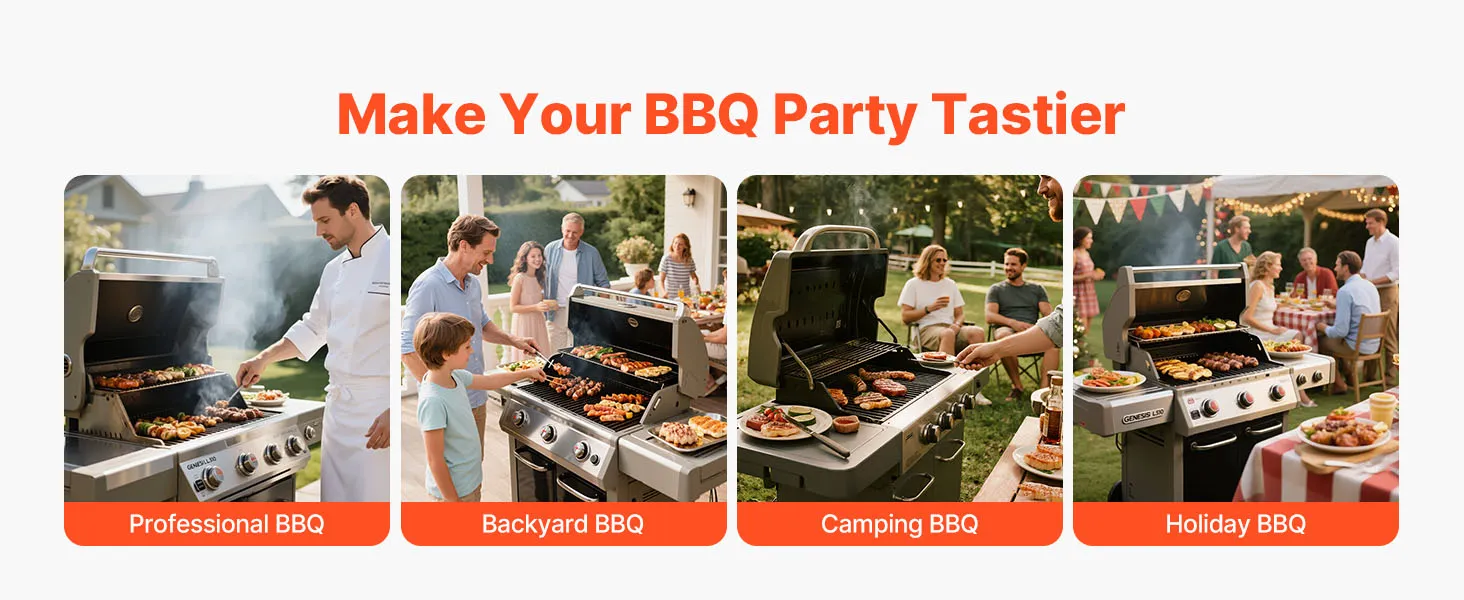 The heat plate is tool-free for disassembly and easy to clean, making every BBQ party simpler and more enjoyable. Whether in professional BBQ shops or outdoor grilling settings, it will help you create unforgettable BBQ moments with family and friends!
