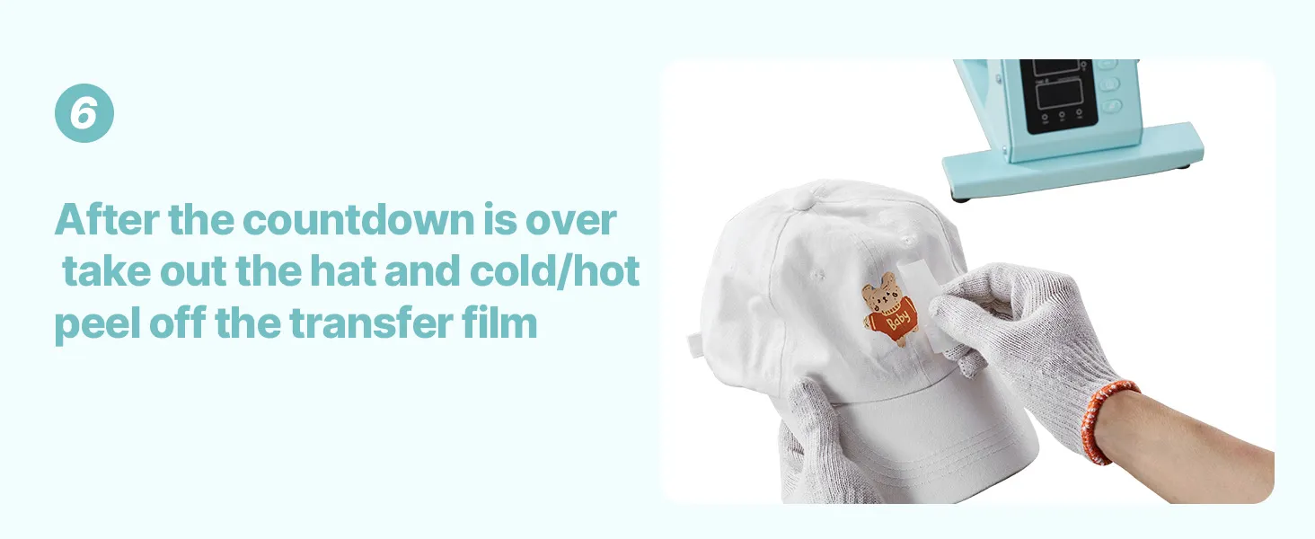 Our hat press keeps the hat tightly fitted against the platen to avoid wrinkles, resulting in high-quality prints.