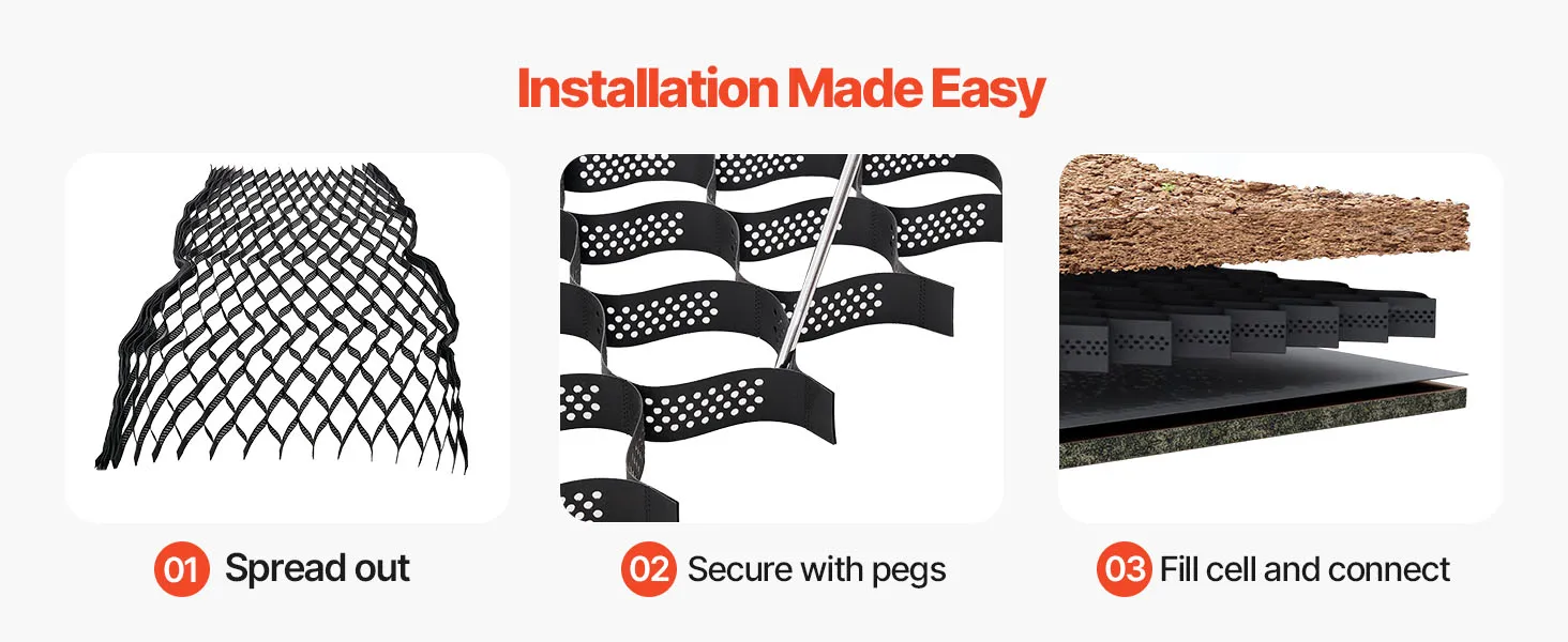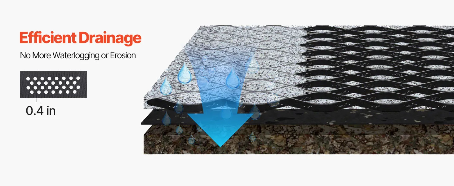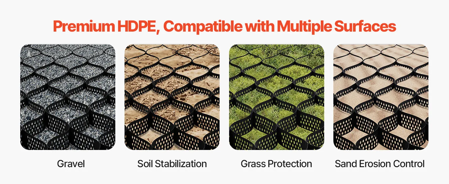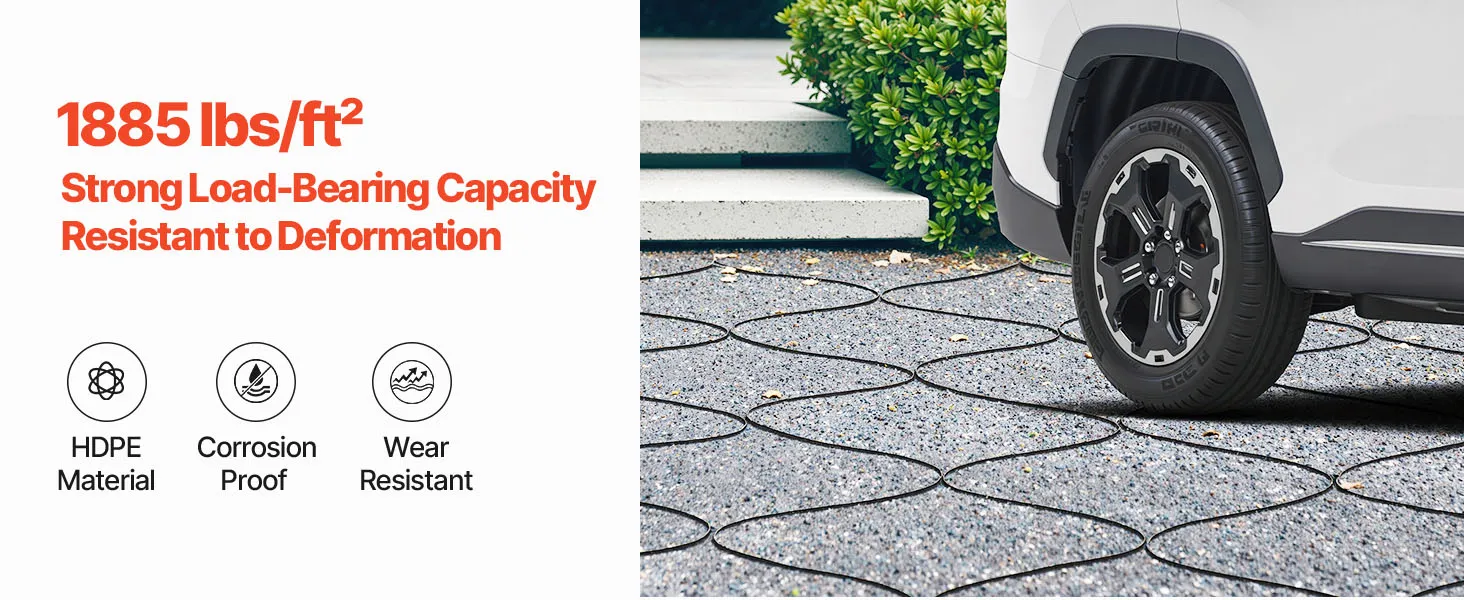 VEVOR Gravel Grid, 3 Inch Depth, 17.06 x 8.86 FT / 5200 x 2700 mm, 1880 LBS Per Sq ft Grass Ground Retainer, Permeable Geo Grids Driveway Stabilization, for Garden, Patio, Walkway, RV Parking Slopes