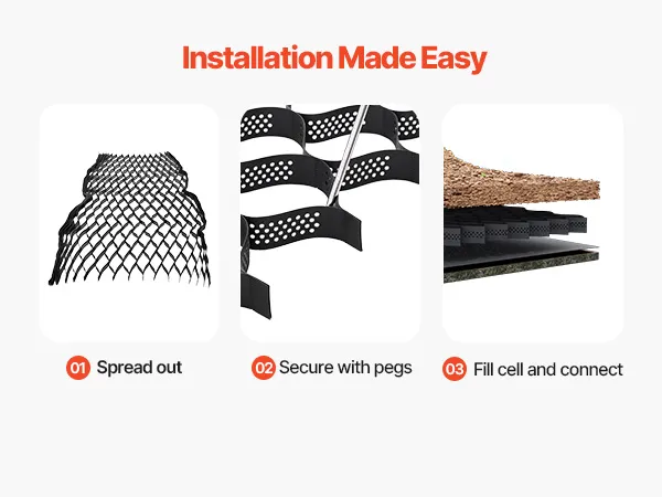 О: нагрузка 1885 фунтов / кв. фут при заполнении ячеек. Пожалуйста, обратите внимание, что перед установкой сетки необходимо убедиться в ровном грунте, а также в том, что сетка надежно закреплена.