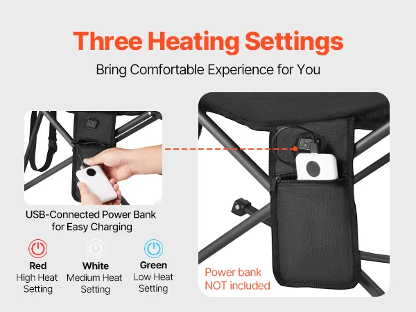 Enjoy custom warmth with three heat settings for the back and seat. Just connect to a USB power bank to stay cozy. Choose your preferred temperature for a personalized heating experience wherever you are.